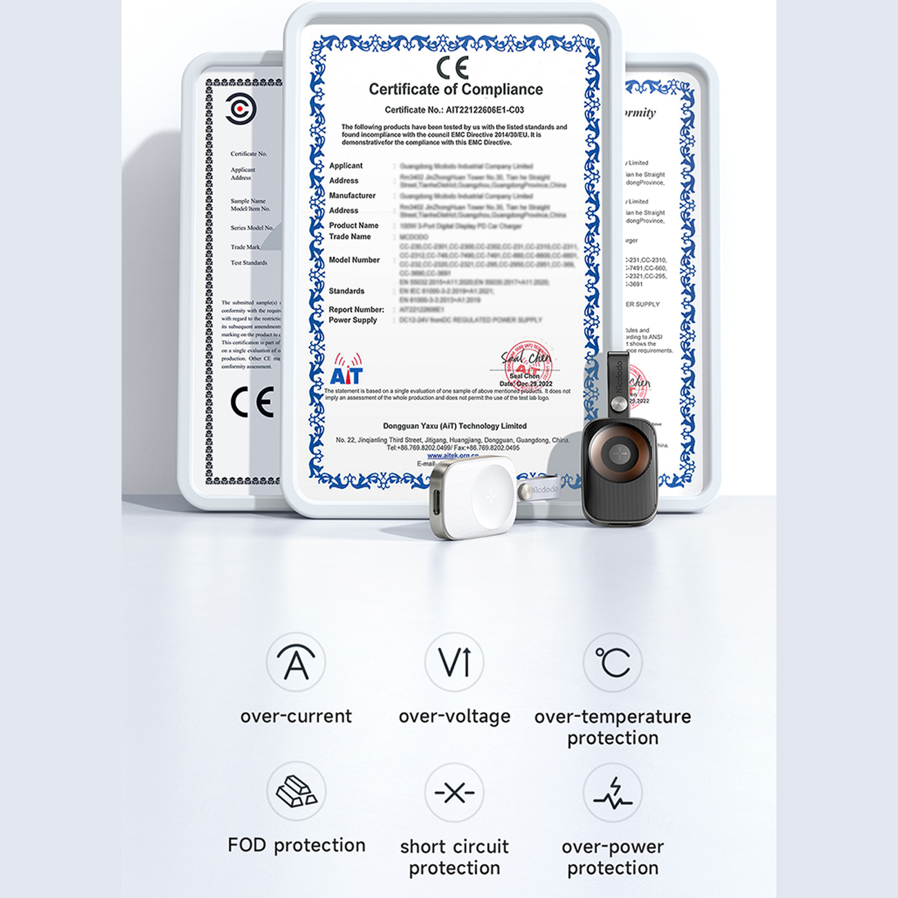 | سایر ویژگیها | پد مگنتی قوی، تراشه هوشمند حفاظت جریان و ولتاژ، حفاظت در برابر افزایش دما، اتصال کوتاه و اجسام خارجی (FOD)، قلاب نگهدارنده، شارژ سریع در 2 ساعت، قابل حمل و سبک |