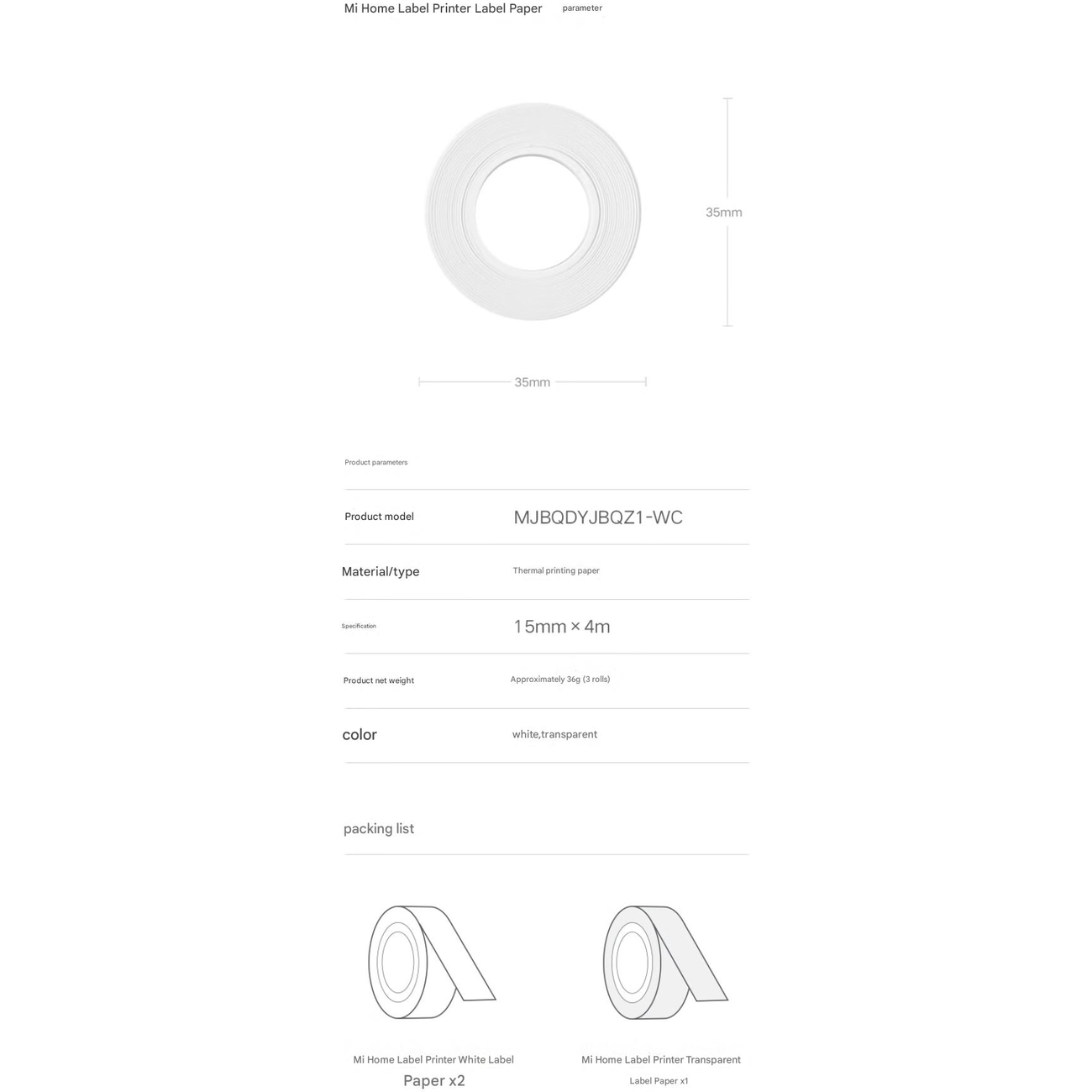 کاغذ پرینتر لیبل زن میجیا MJBQDYJ1-WC شیائومی Xiaomi Mijia MJBQDYJBQZ1-WC (رول 3 عددی)