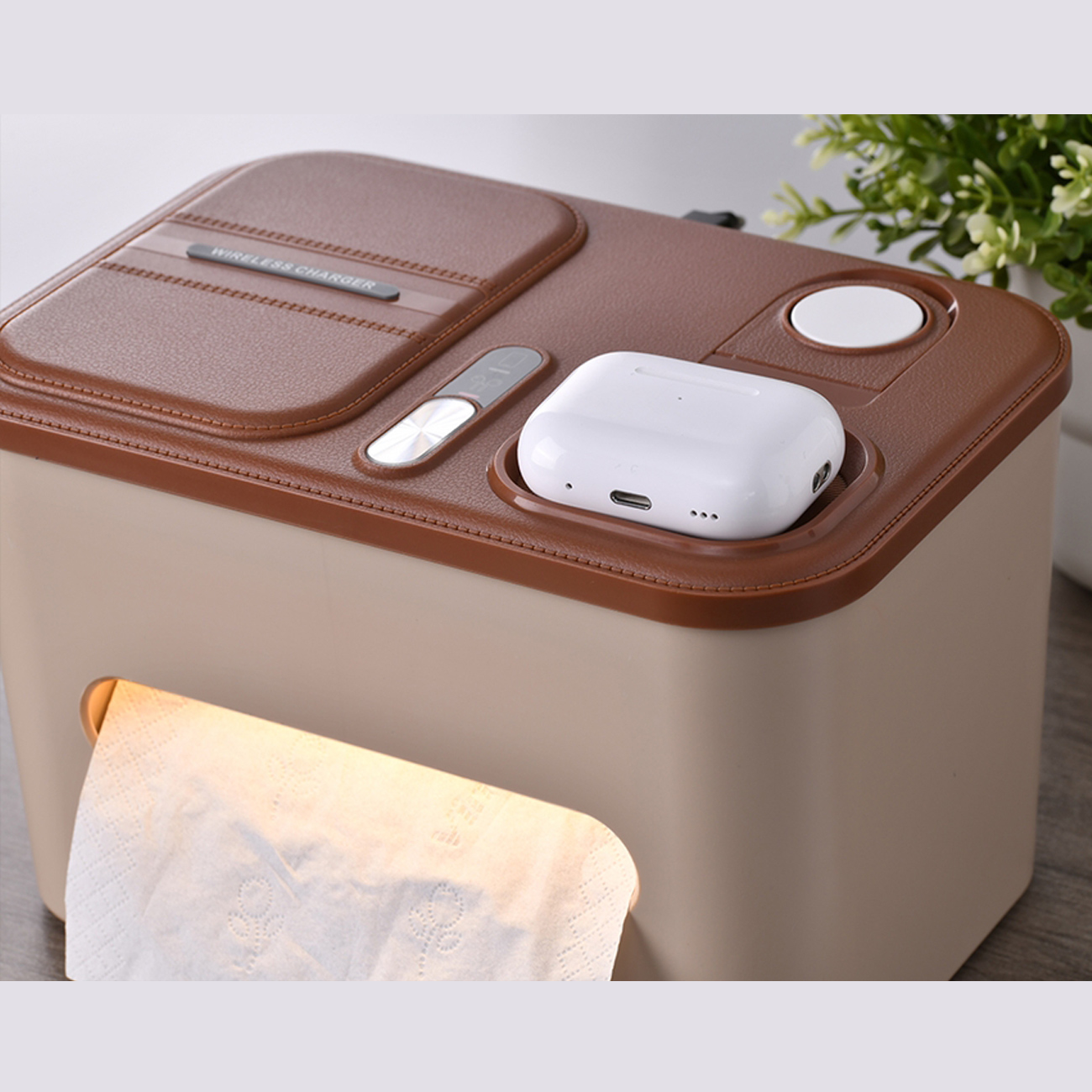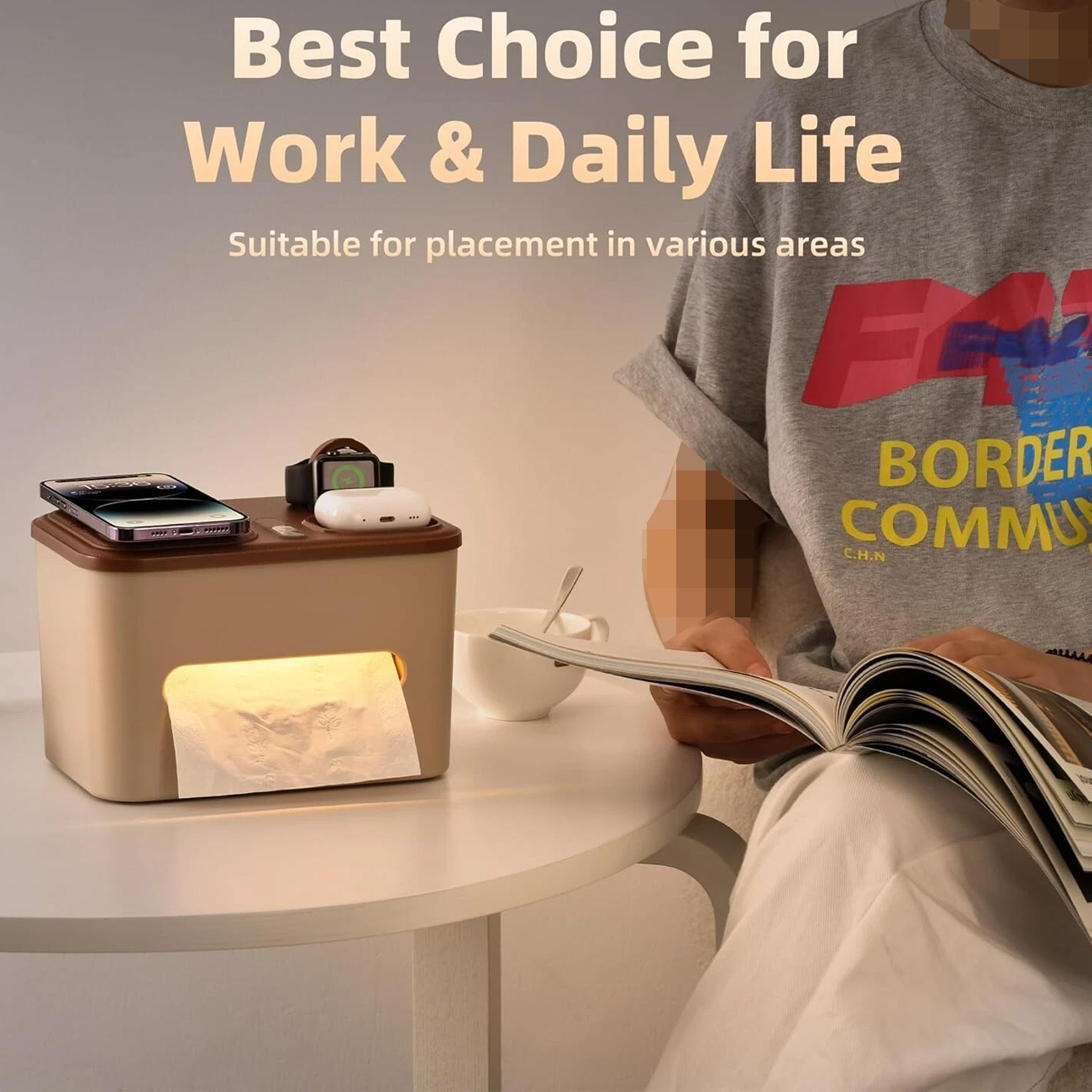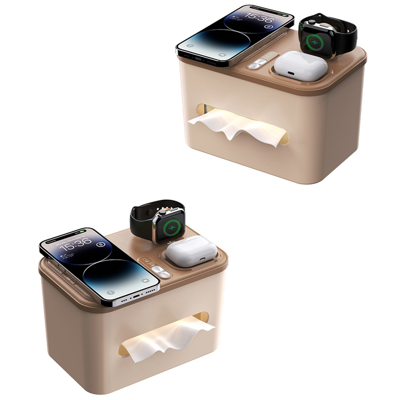 Multifunction TISSUE BOX Holder with 3 in 1 Fast Charging Station, Wireless Charging