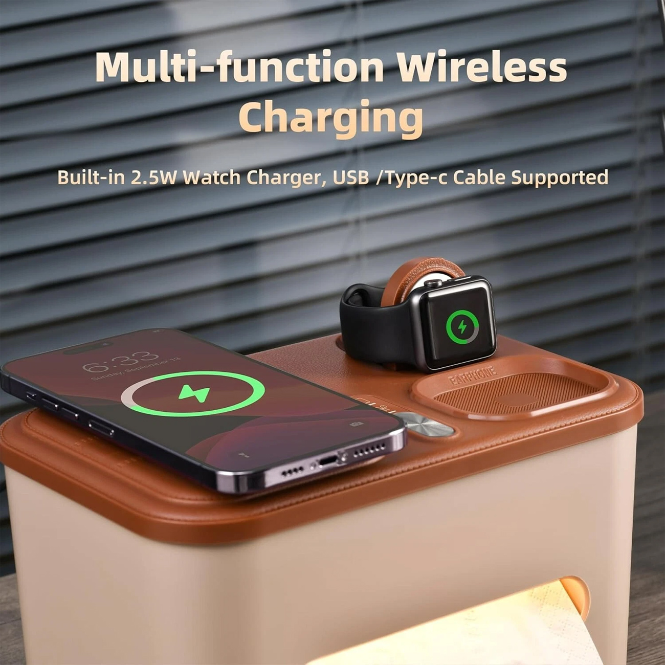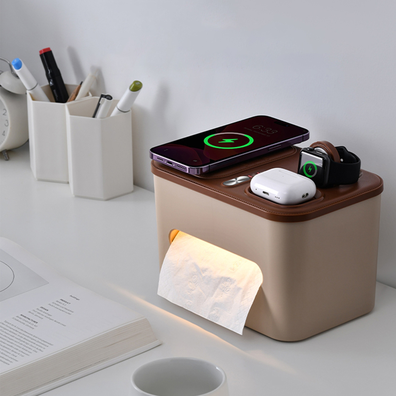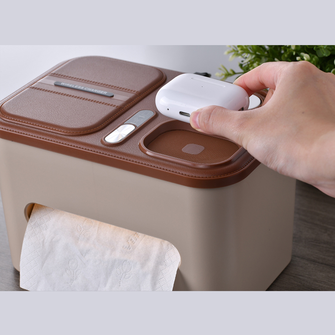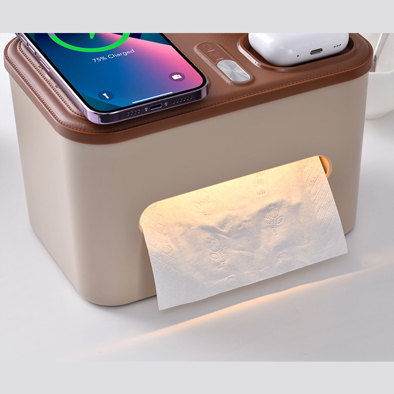Multifunction TISSUE BOX Holder with 3 in 1 Fast Charging Station, Wireless Charging