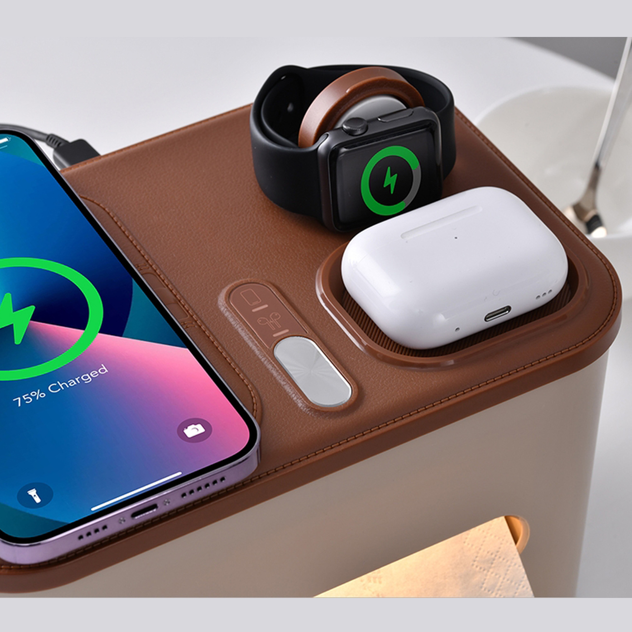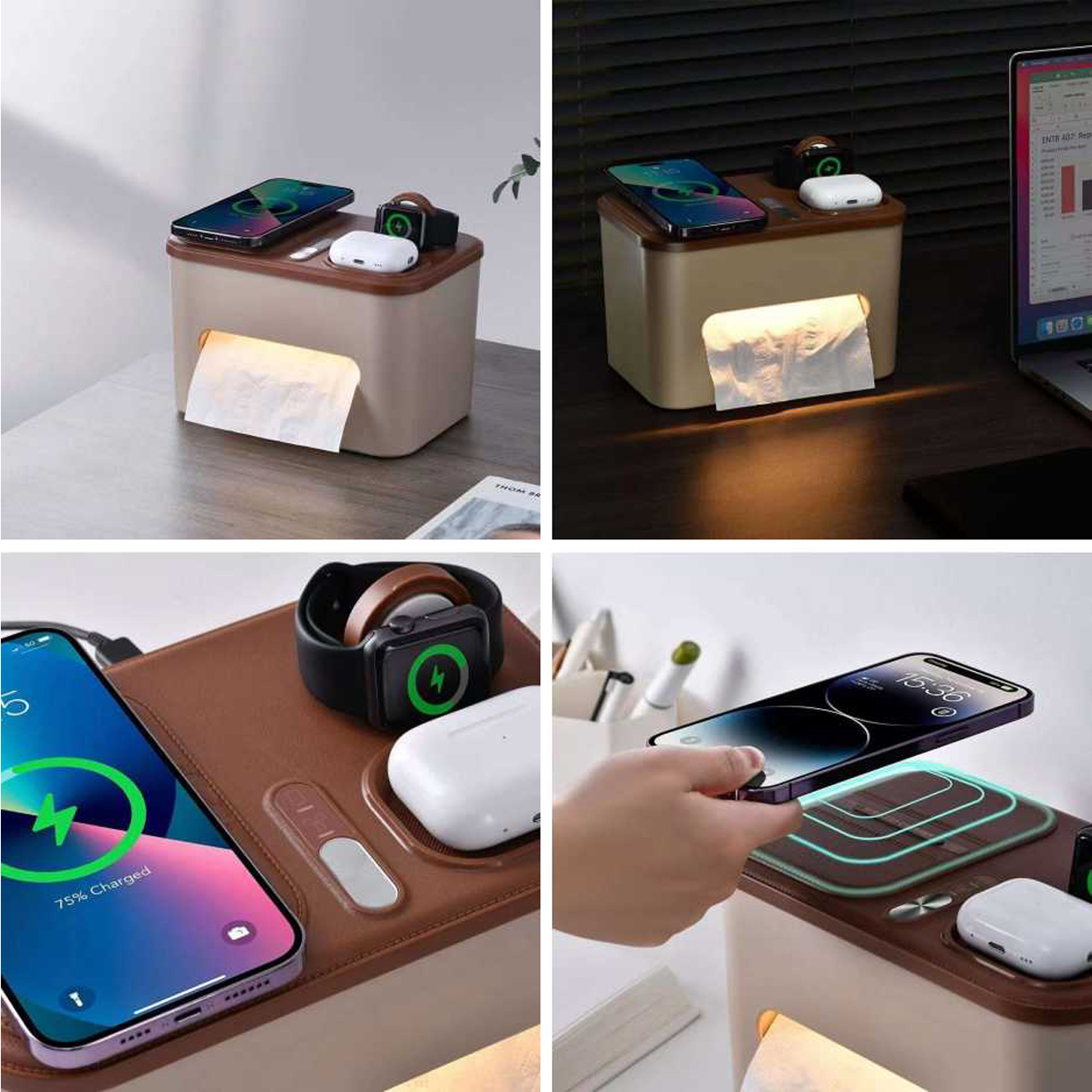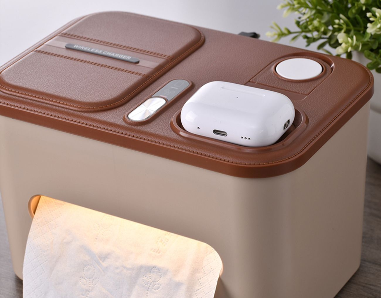 جعبه دستمال کاغذی و شارژر وایرلس سه کاره