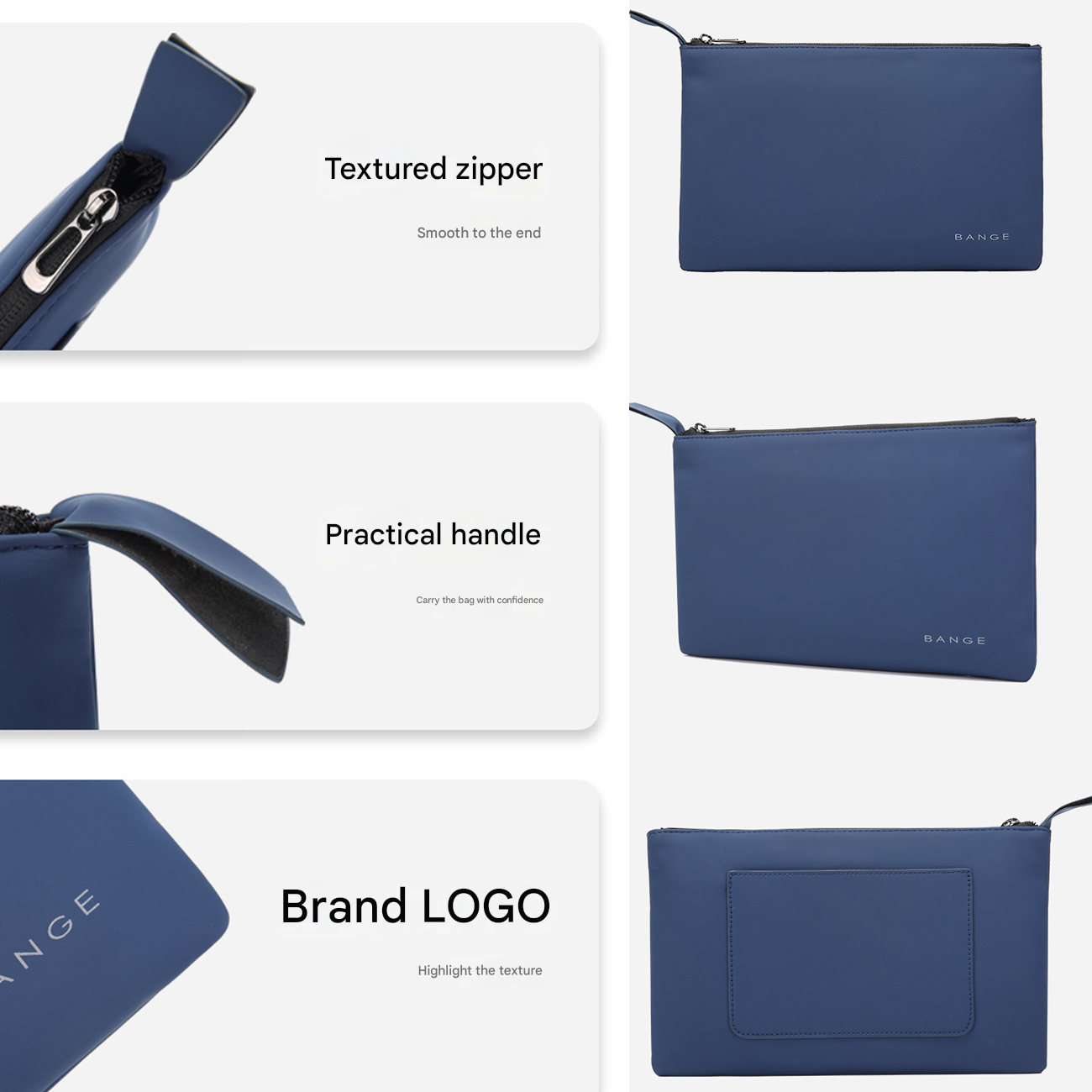 | لوگو | لوگوی برجسته و ظریف BANGE در پایین کیف |