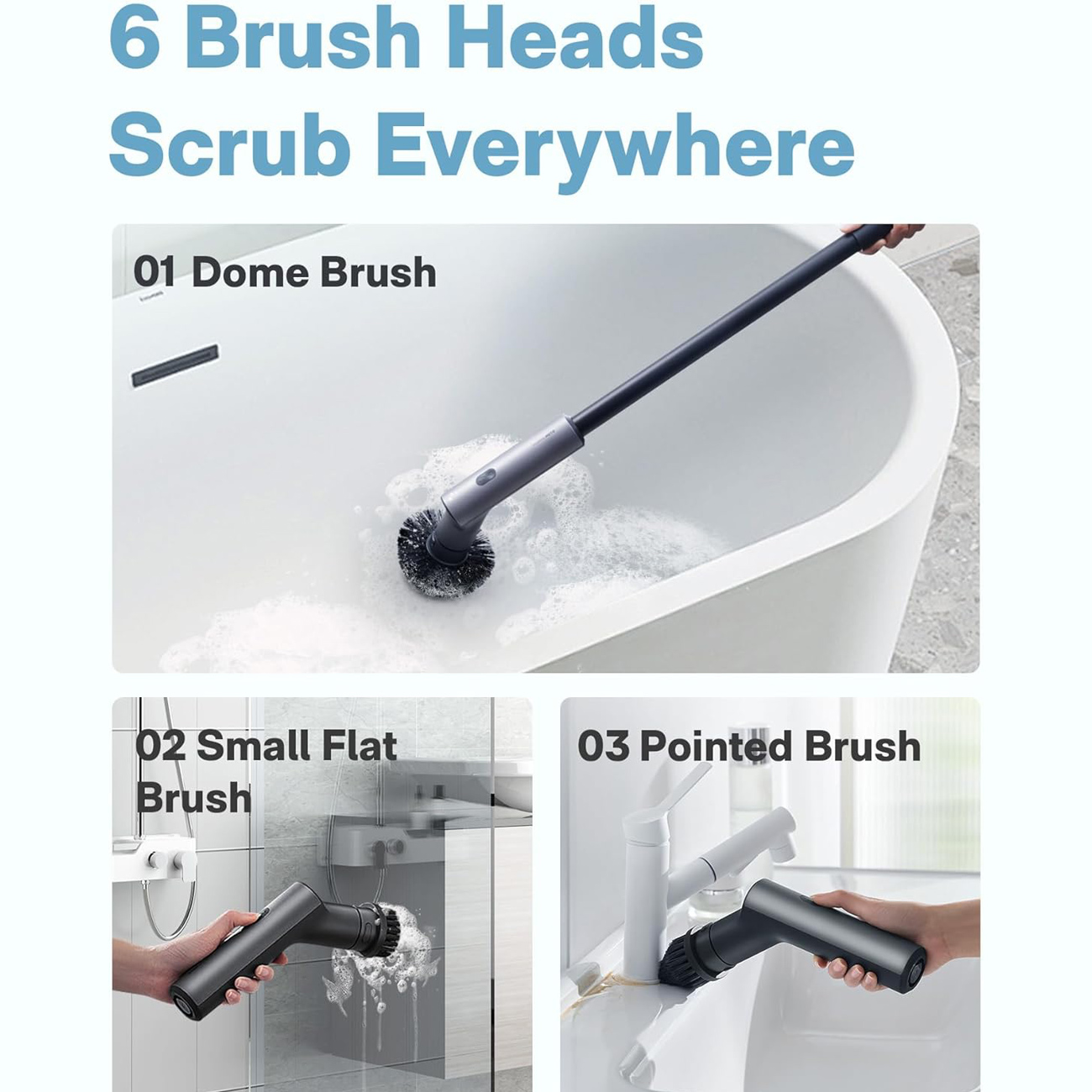 HOTO QWQJS001 Cordless Electric Spin Scrubber, IPX7 Full Body Waterproof Bathroom Cleaning Brush, 6 Brush Heads