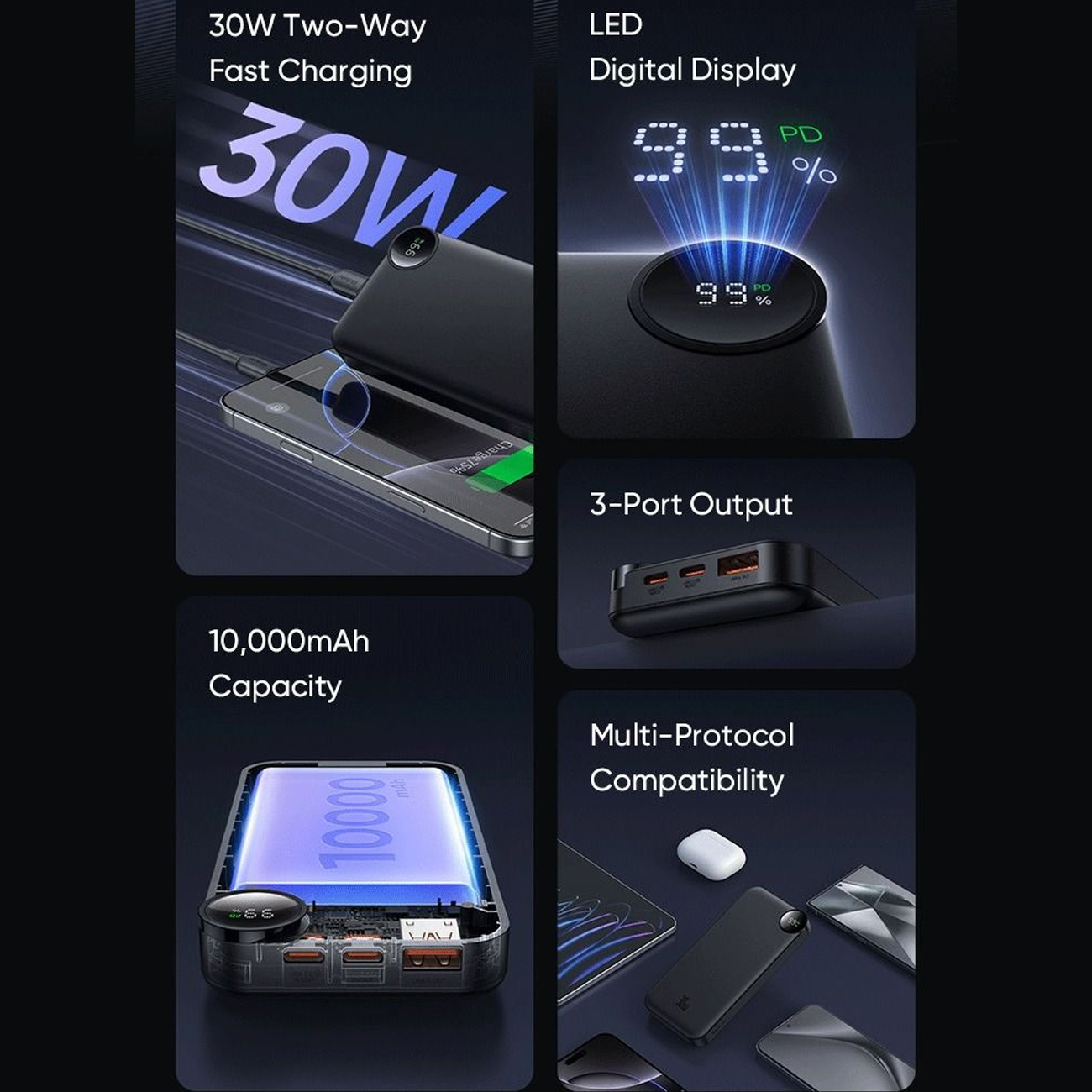 | سازگار با | پشتیبانی از شارژ سریع برای گوشیهای Apple، Samsung، Huawei و سایر گوشیهای دارای PD/QC/FCP/SCP/VOOC/AFC شارژ تبلتهای اپل و اندرویدی با پورت USB‑C یا USB‑A، با توان مناسب تا 30 وات هر دستگاهی که با پورت USB‑C یا USB‑A شارژ شود و جریان ورودی تا 30 وات را تحمل کند |