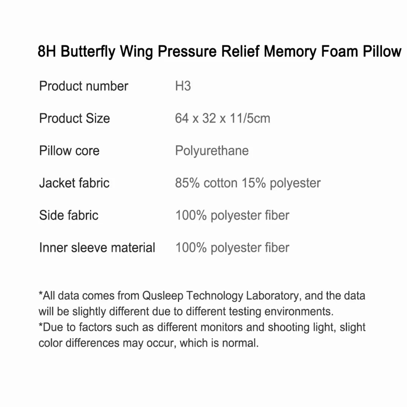 8H Butterfly Wing Pressure Relief Memory Foam Pillow Single Pack H3