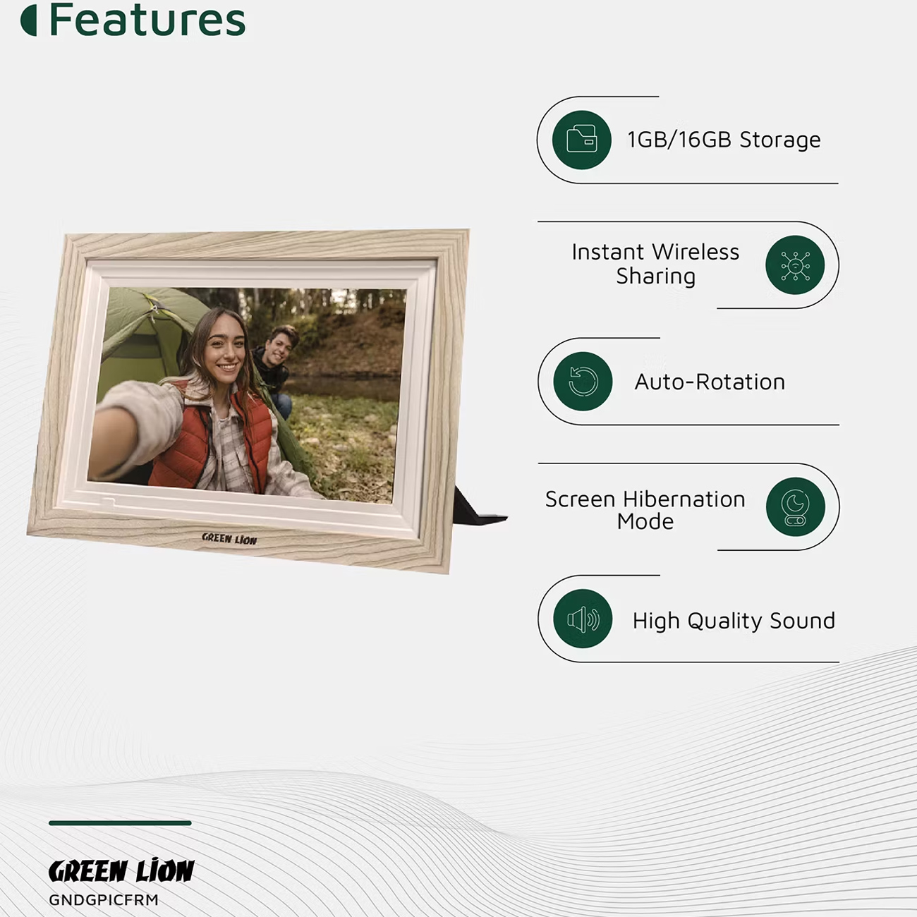 Green Lion GPF32 Digital Picture Frame Touch Screen Display 10.1 Inch GNDGPFRMBK