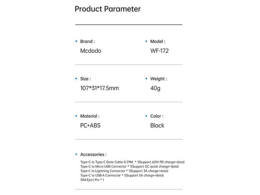 Mcdodo WF-1720 Multifunctional Storage Box for Cable Connector SIM Ejector Card Slot