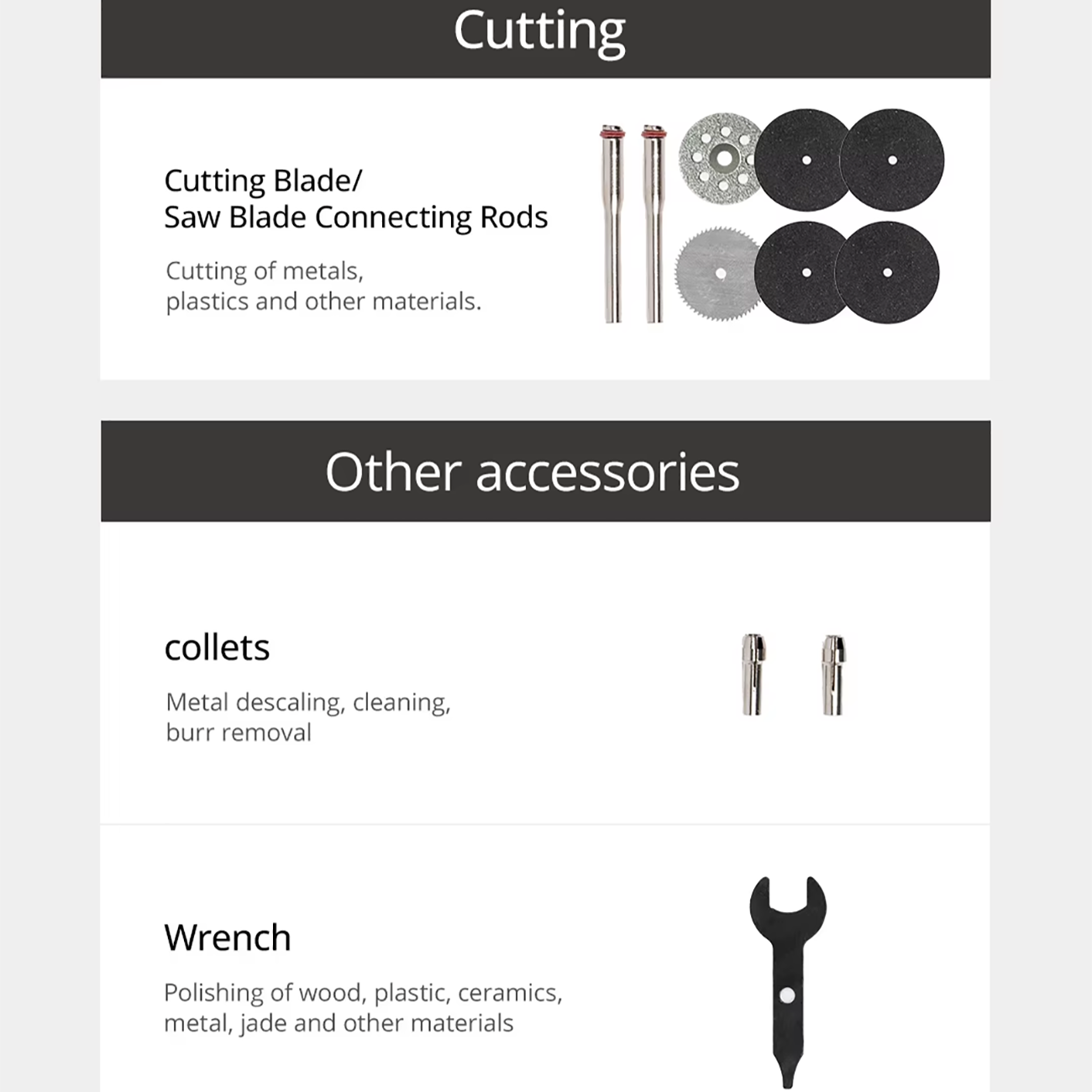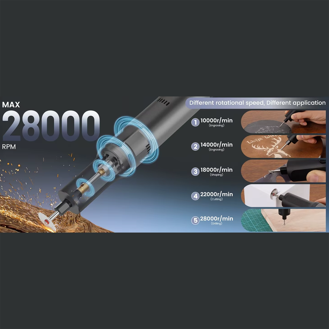 | کاربردها | حکاکی روی چوب، فلز، شیشه و پلاستیک، سنگزنی و پرداخت سطوح، پولیش قطعات کوچک، برشهای سبک، تمیزکاری و ظریفکاری |