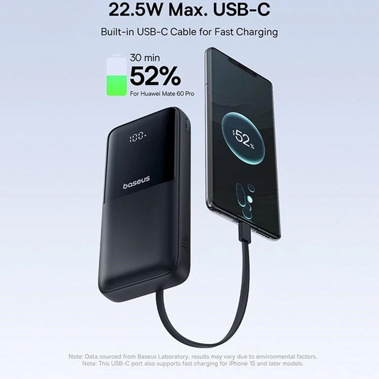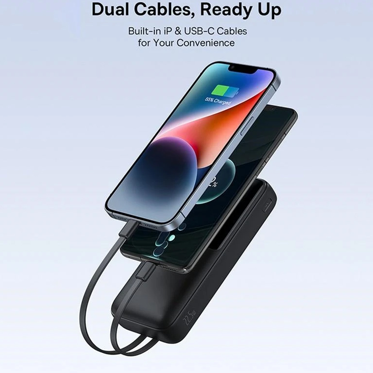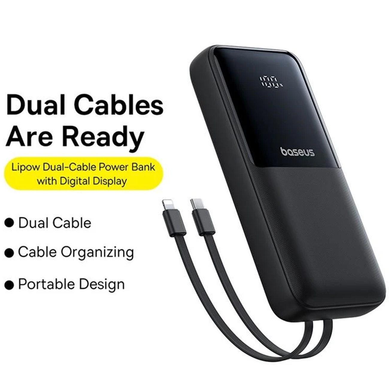 Baseus Lipow 22.5W Power Bank 20000mAh with Built-in Lightning and USB-C Cables and LED Display
