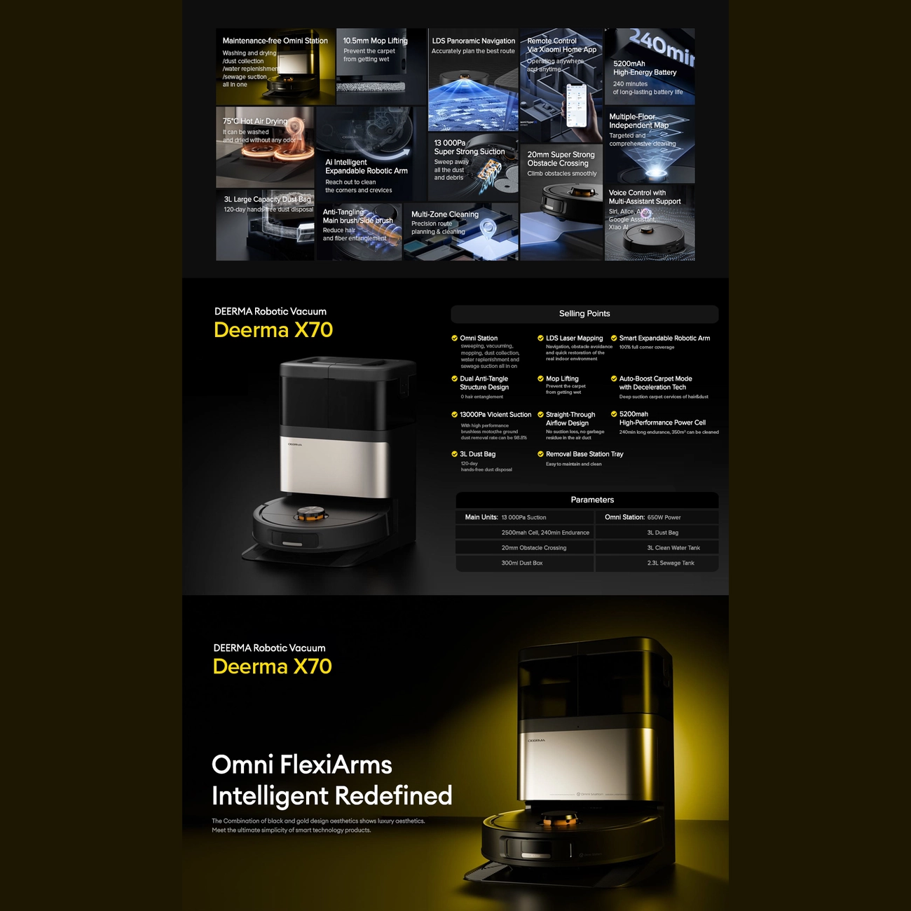 جارو رباتیک درما Deerma اصلی مدل X70 با قابلیت تی کشی