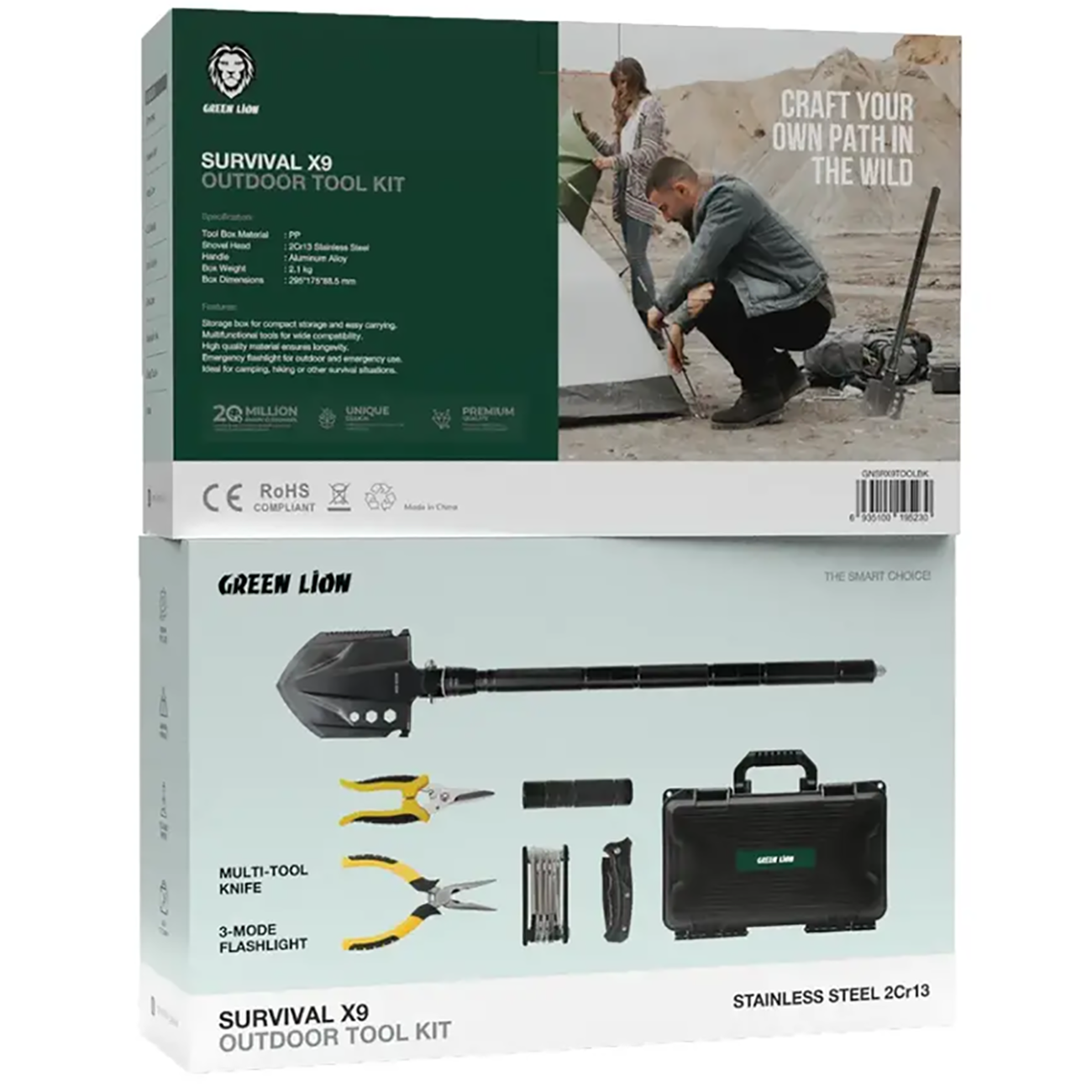مجموعه ابزار کمپینگ گرین لاین Green Lion اصل مدل GNSRX9TOOLBK
