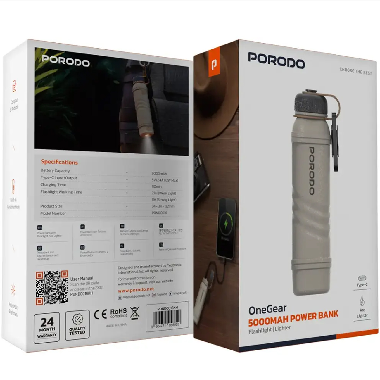 Porodo PDNDC016KH OneGear with 5000mAh Power Bank with Flashlight & Lighter