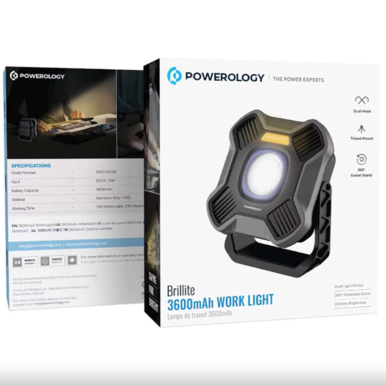 Powerology Brillite 3600mAh Work Light with 360° Rotatable Stand