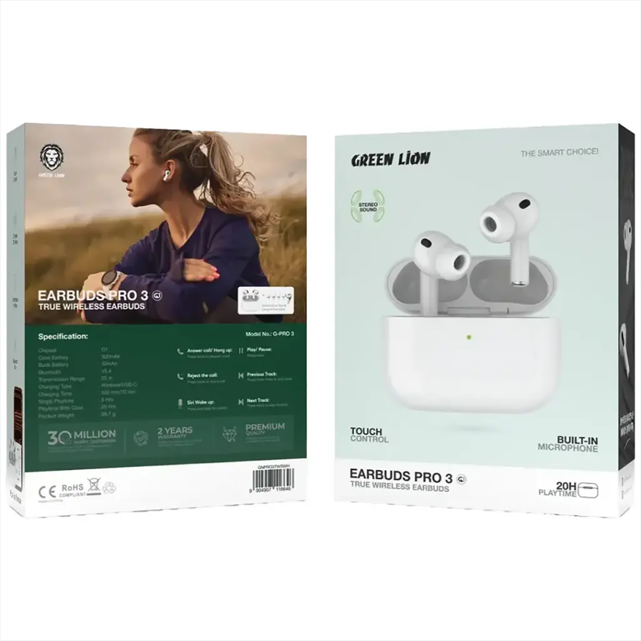 Green Lion GNPRO3TWSWH Earbuds Pro 3 True Wireless Earbuds G-PRO3