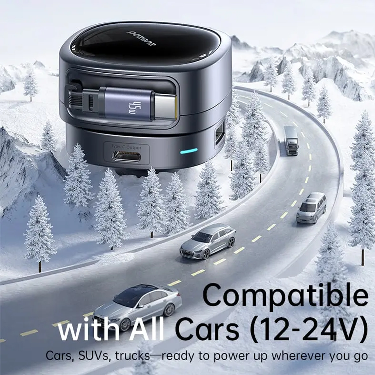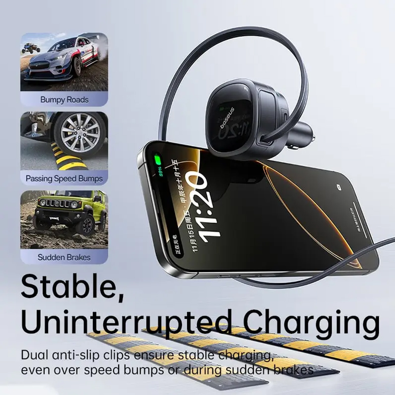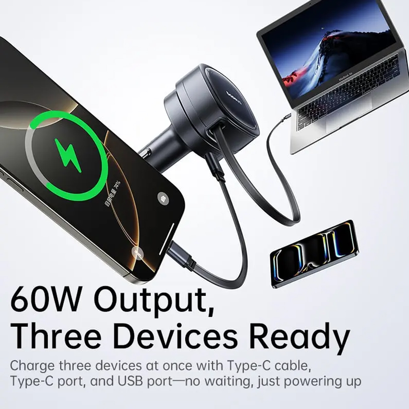 Baseus PrimeTrip VR1 Car Charger with Retractable Cable (U+C)+Type-C 60W BSCC-TX-UC-C