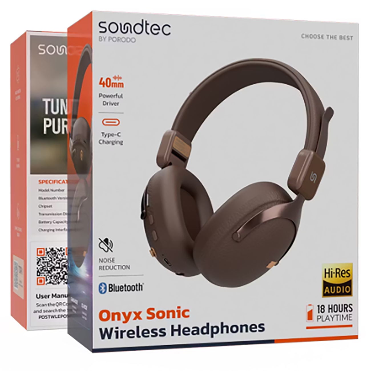 Porodo Soundtec PDSTWLEP053BK Onyx Sonic Bluetooth Version 5.4 Headphones with Noise Reduction