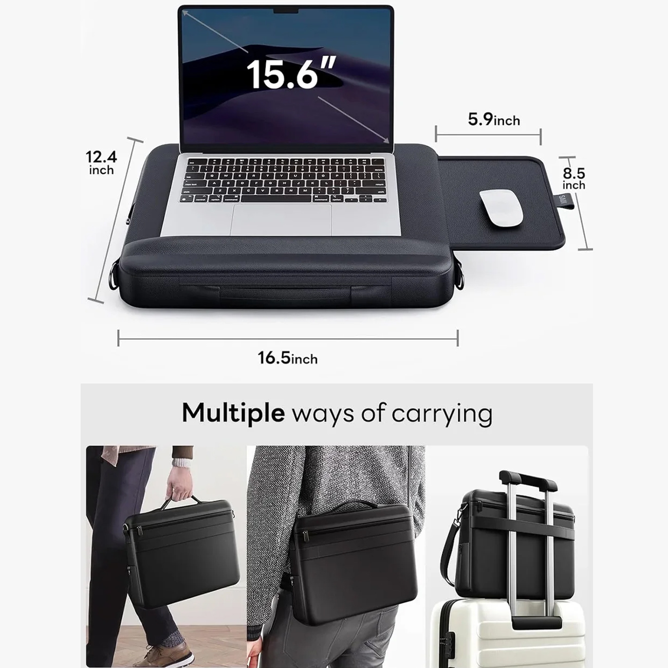 | سایر ویژگیها | - طراحی دو کاره: پد لپتاپ + کیف لپتاپ - بند شانهای جداشدنی و دسته حمل - ۲ جیب جانبی کشی - فضای کشویی ماوس |