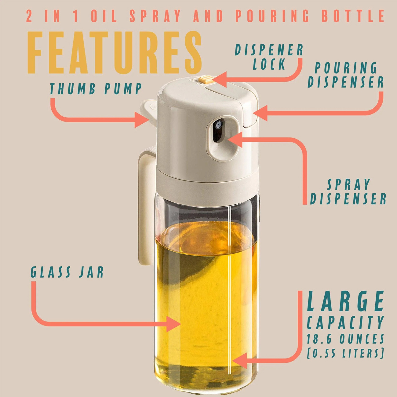 Oil Dispenser Bottle 2 in 1 Oil Dispenser and Oil Sprayer Bottle Cooking