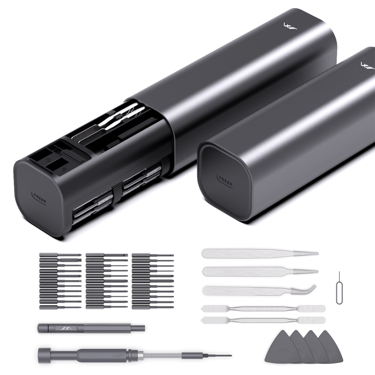 | مجموعه شامل | حداکثر ۴۲ سر مته مختلف، ۳ نوع موچین استیل ضد زنگ، ۲ دسته، یک کلید خارج کننده سیم کارت، یک ابزار فلزی زیر پایه، یک آهنربا و یک آهنربا زدا و یک کیف محکم |
