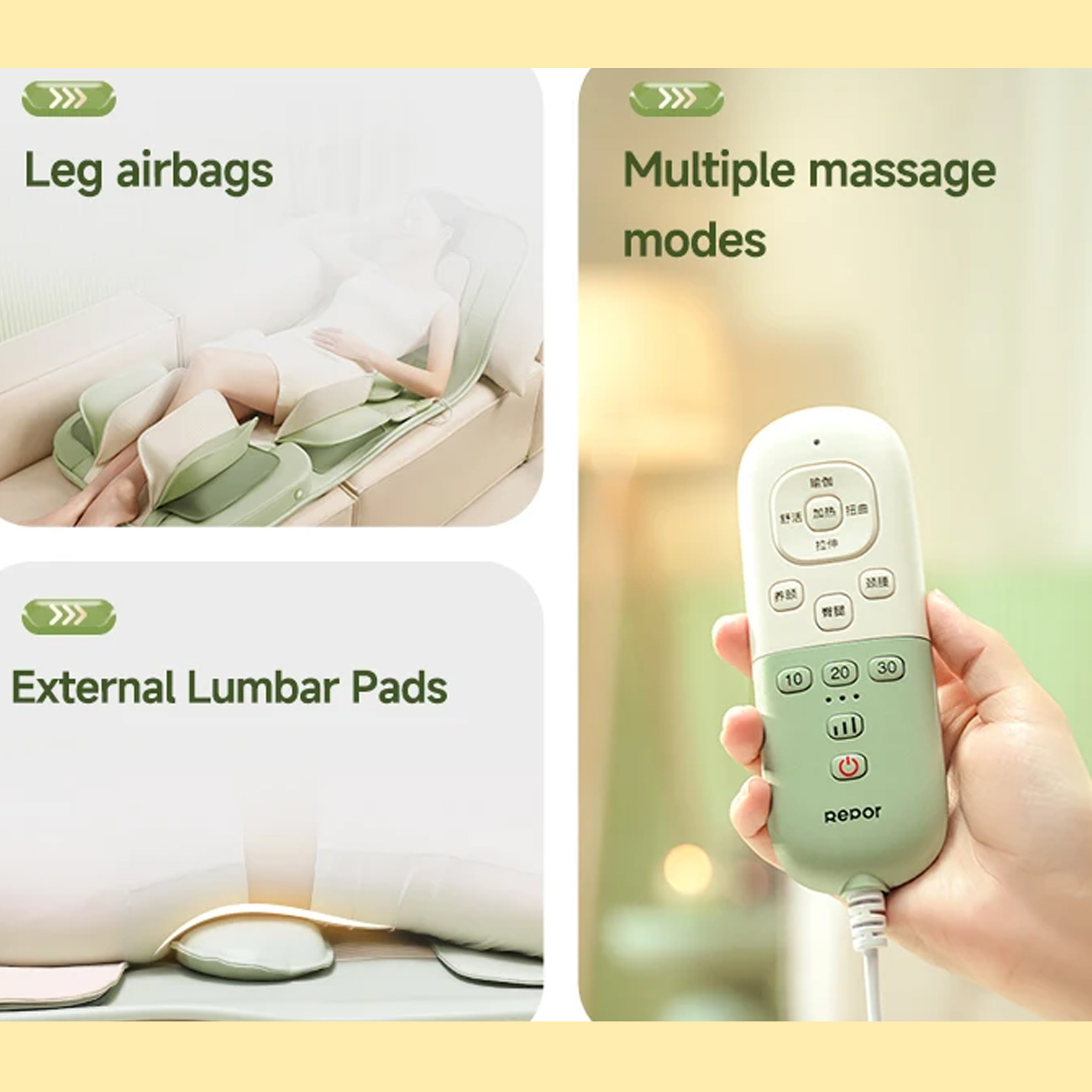 Repor RP-U9MAX is a portable full body air pressure massage mattress with automatic airbags.