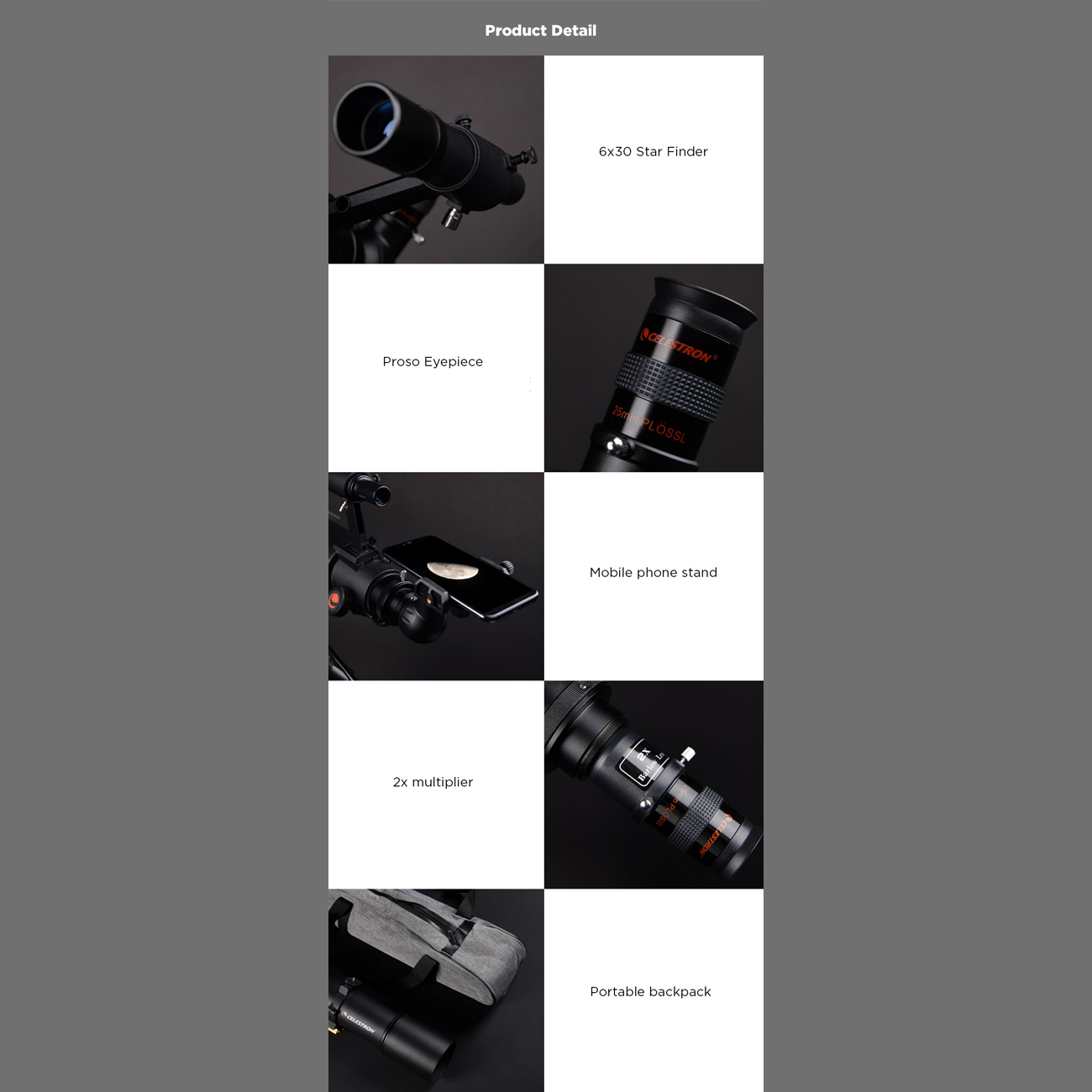| اقلام همراه | تلسکوپ نجومی، سهپایه، کیف لوله لنز، کیف لوازم جانبی، دفترچه راهنما، 2 عدد چشمی |