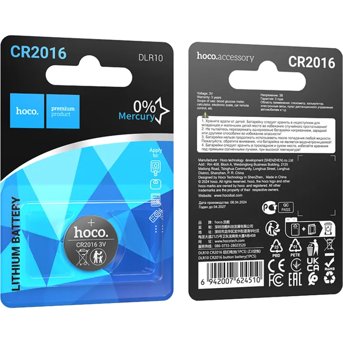 HOCO DLR10 CR2016 Lithium Coin Cell Battery 3V 75mAh