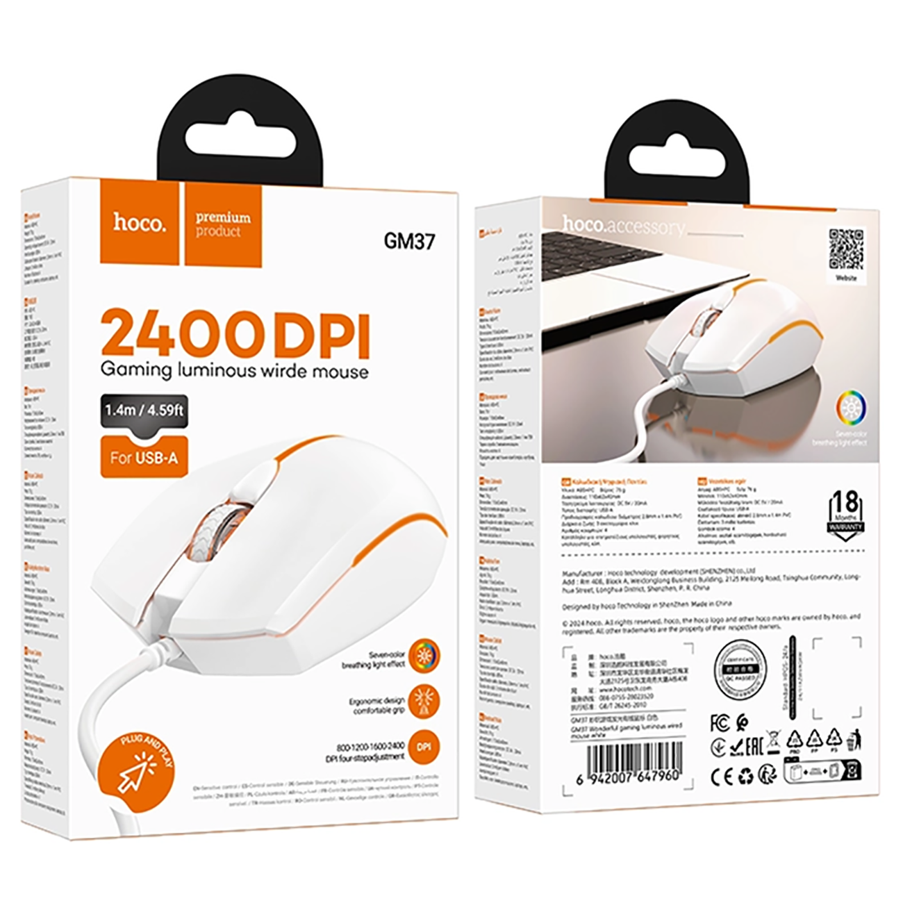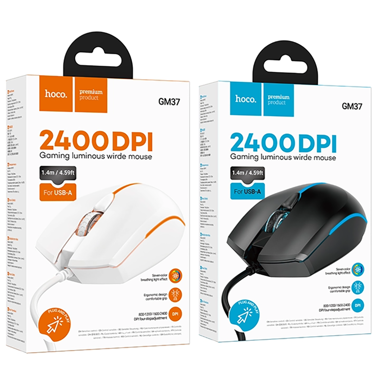 ماوس گیمینگ سیمی هوکو Hoco مدل GM37 با نورپردازی RGB