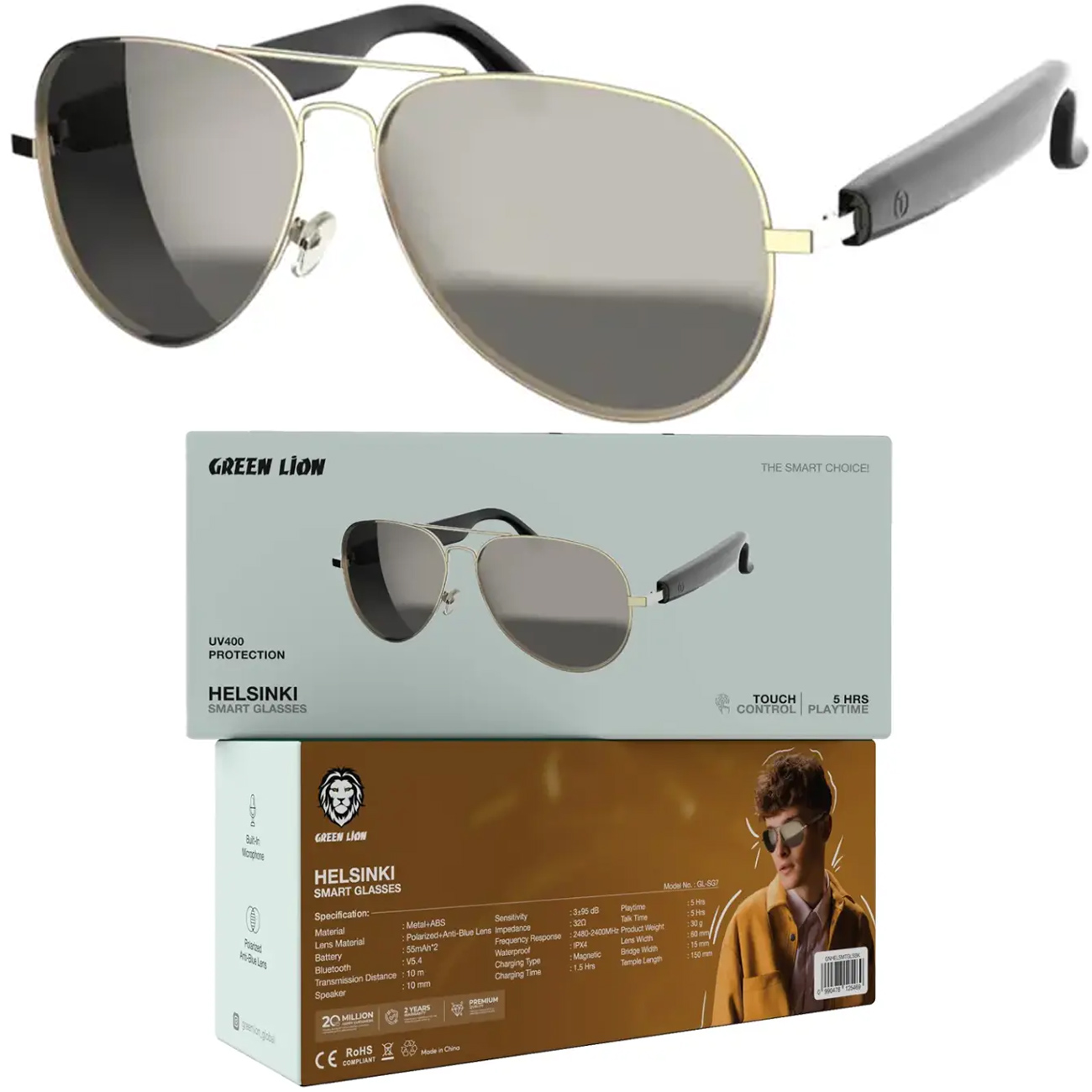 Green Lion GNHELSMTGLSBK Helsinki Smart Glasses