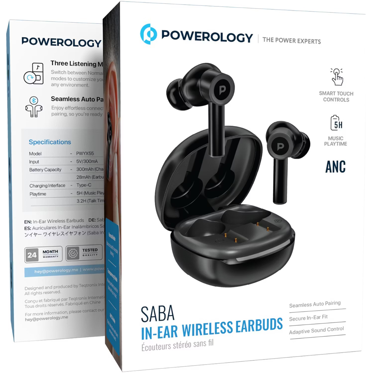 Powerology Saba PWYX55BK In-Ear Wireless Earbuds