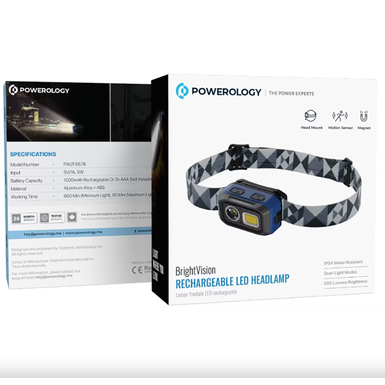 Powerology PWZF6578BK Waterproof Headlamp