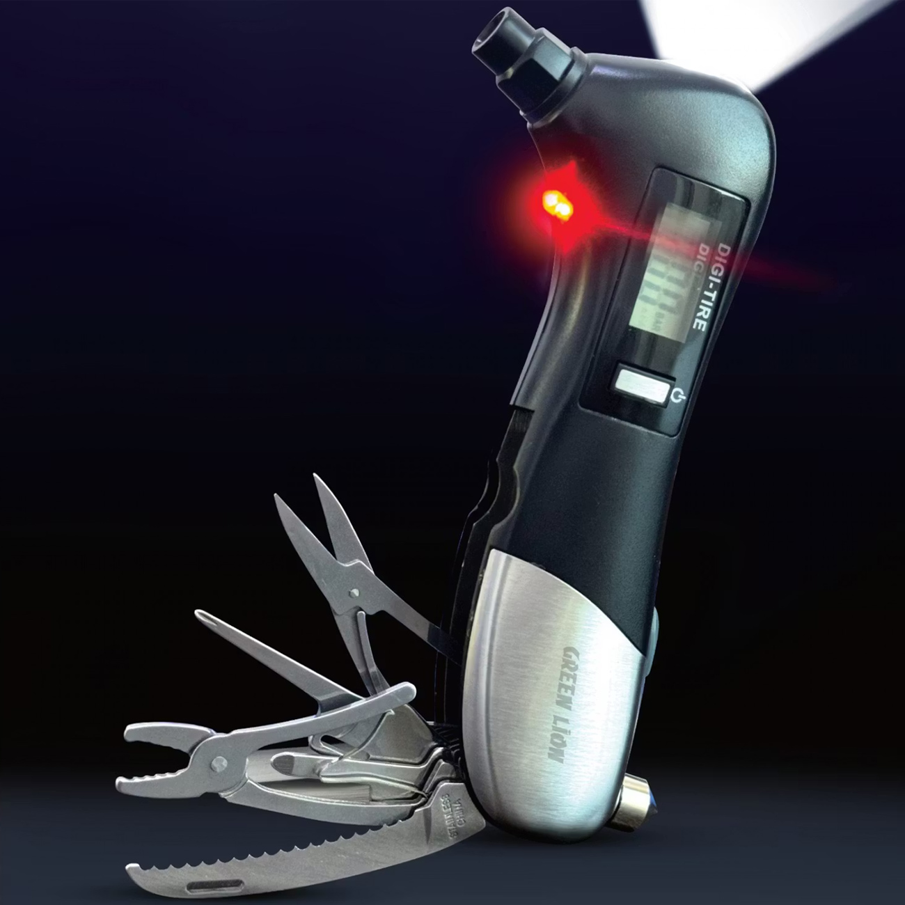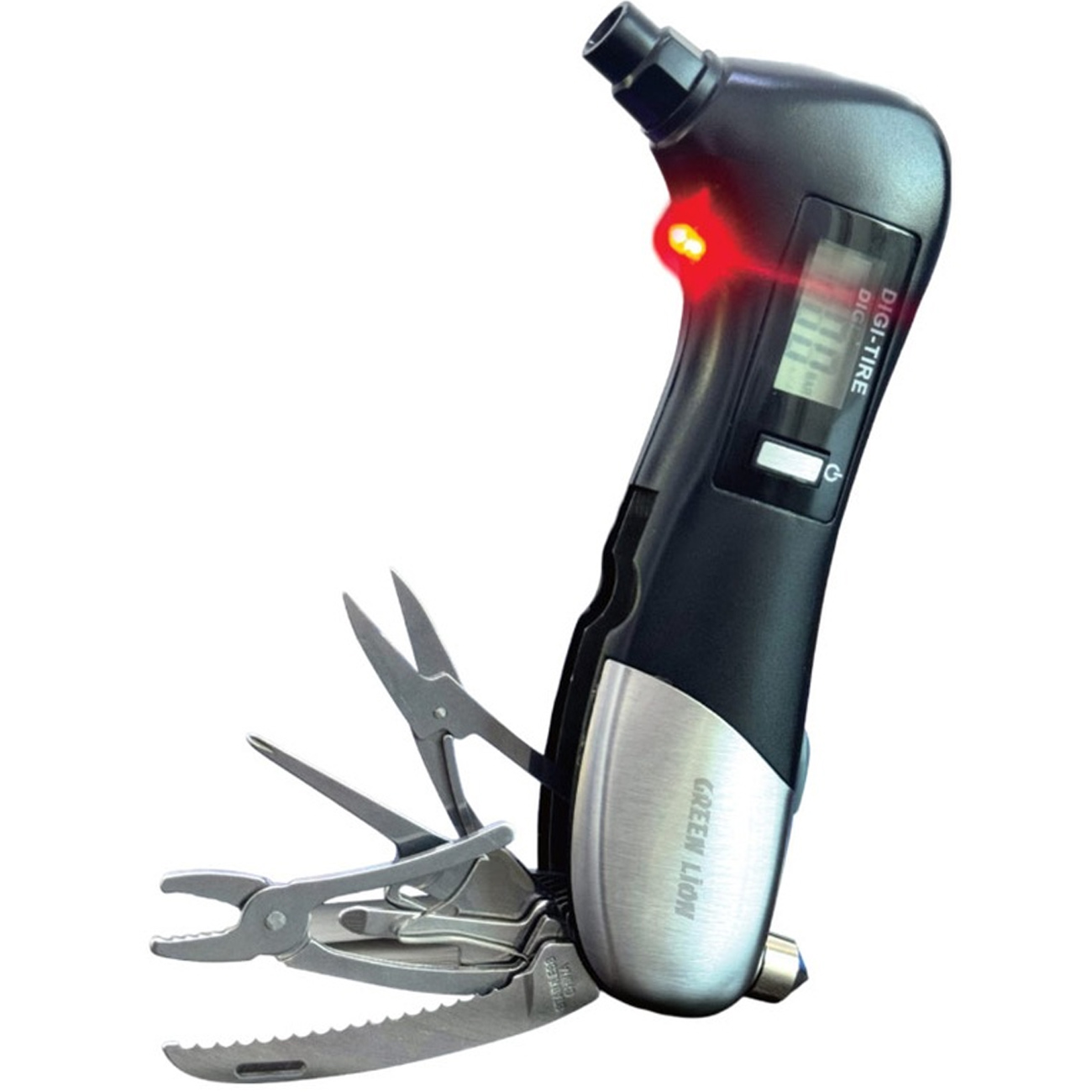 Green Lion GNDITIREPRBK Digital Tire Pressure Gauge 9 In 1 Rescue Tool