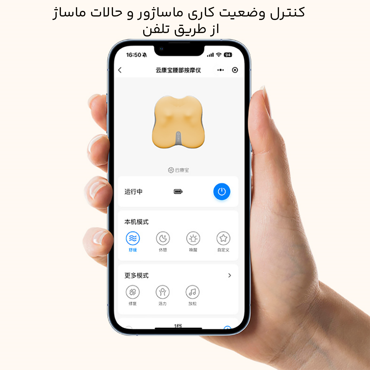 | قابلیت اتصال به گوشی همراه از طریق بلوتوث | برای حالتهای مختلف و تنظیماتی مانند دما، سرعت و مدت زمان |