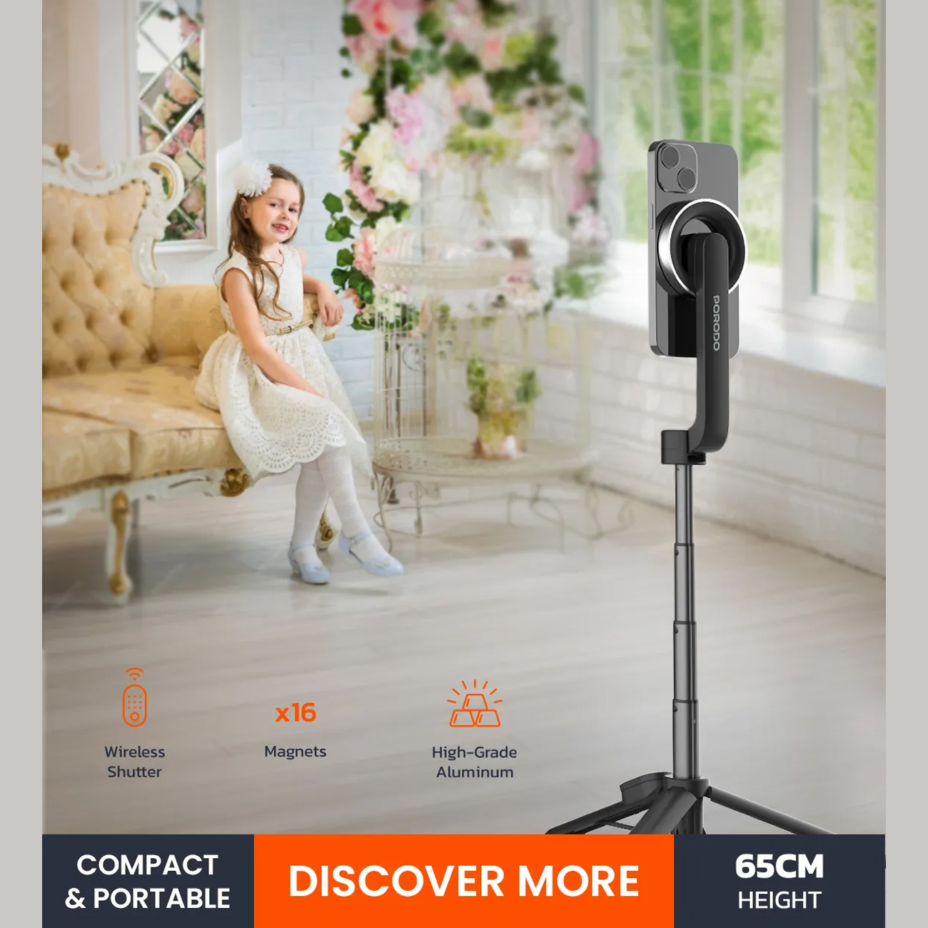 Porodo PD-MGS64 Magnetic Selfie Stick 65cm Extendable with 3 Leg Tripod and Remote Control