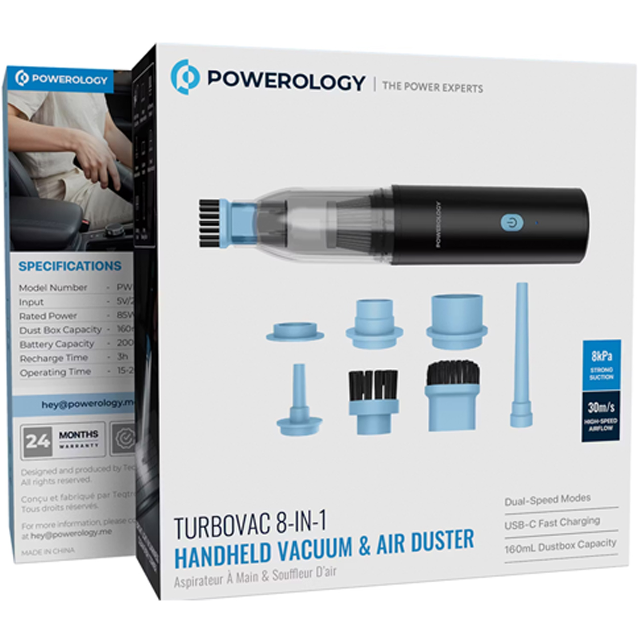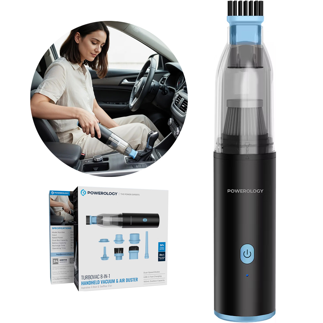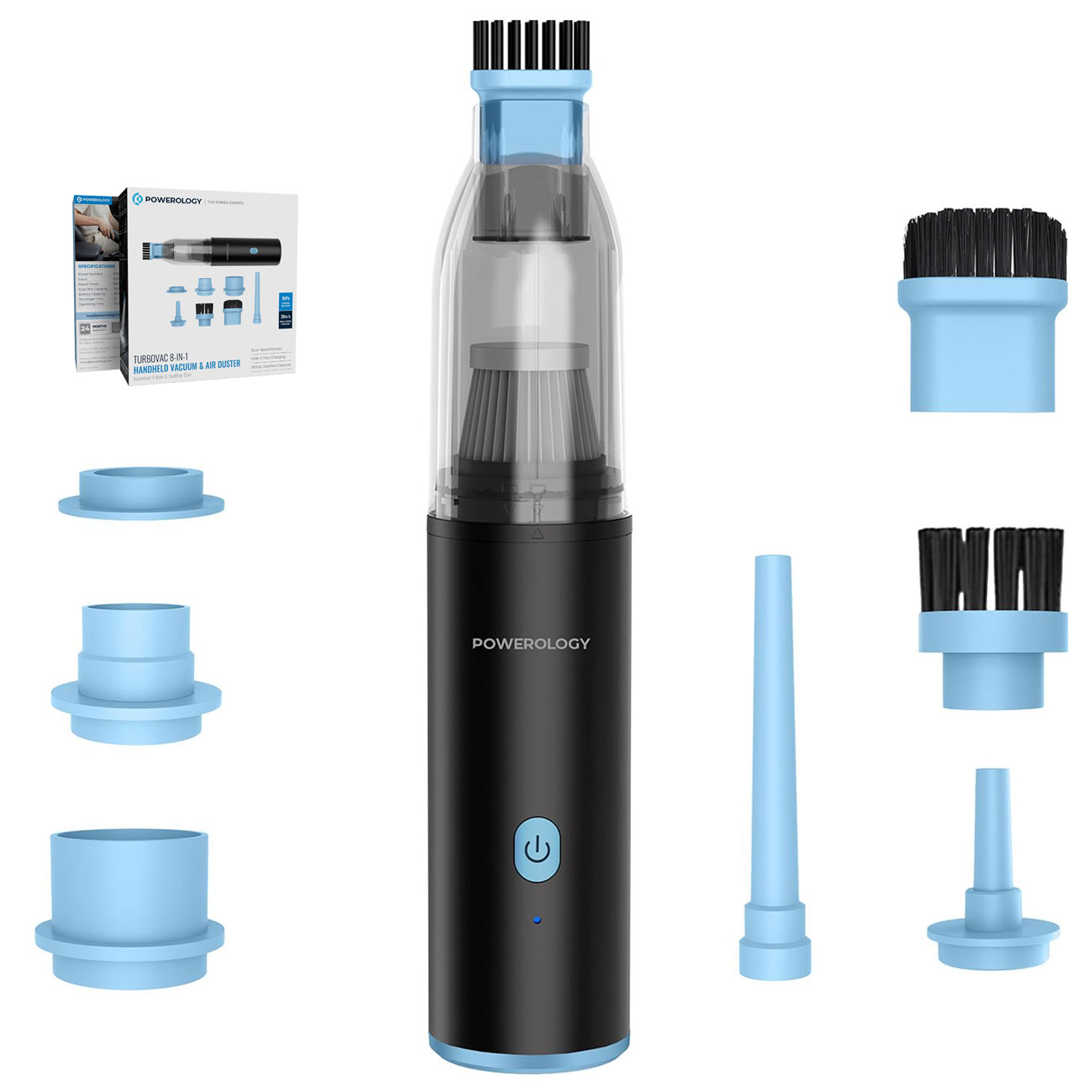 Powerology Turbovac PWLFVD05BK 8-In-1 Handheld Vacuum & Air Duster