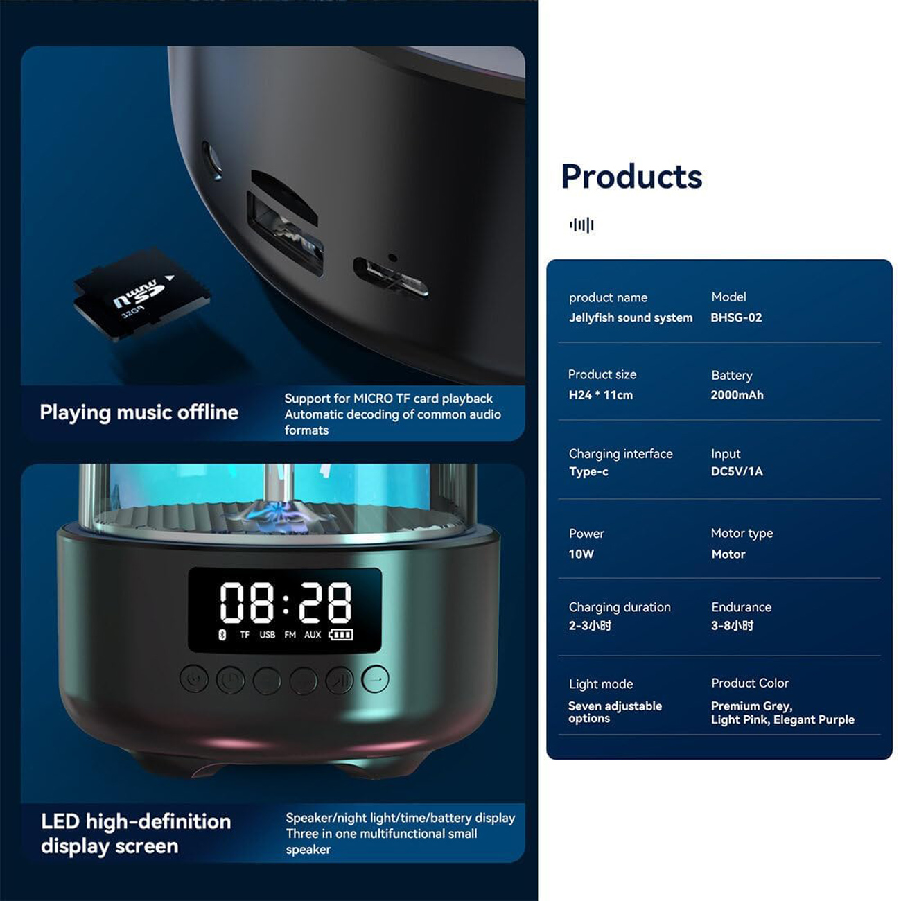 | ویژگی خاص | حرکت مکانیکی ژله، چندمنظوره (اسپیکر + چراغ + ساعت) |