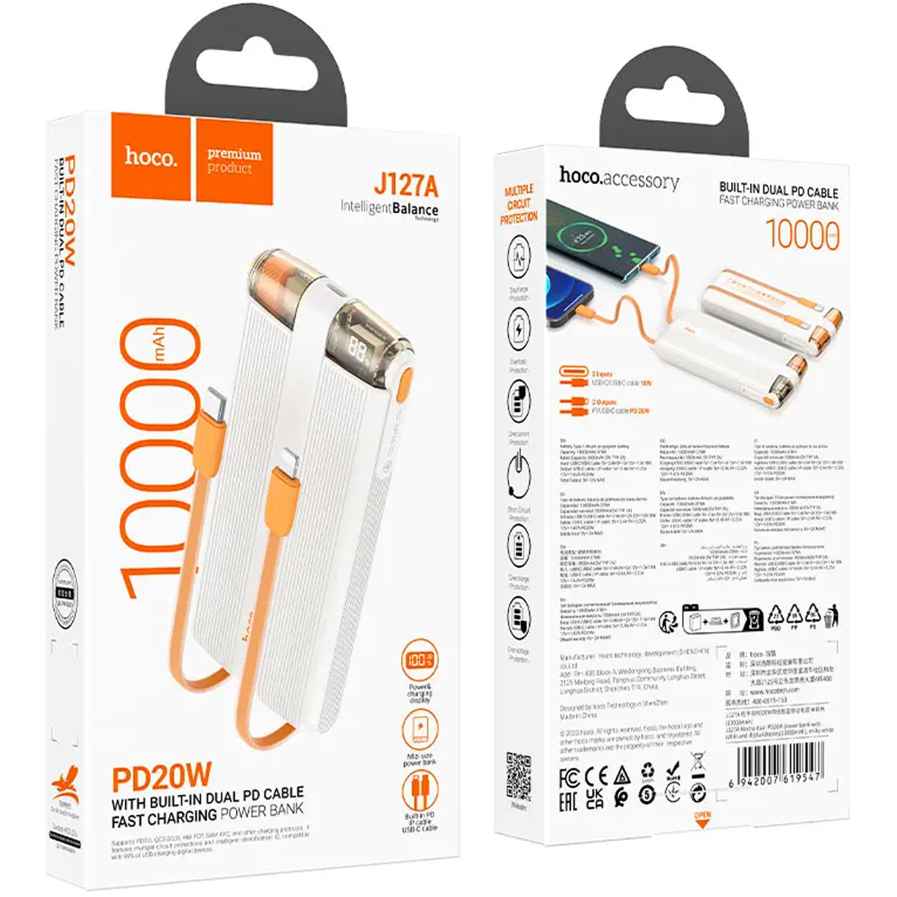 پاور بانک 10000 هوکو HOCO مدل J127A با کابل تایپ سی و لایتنینگ