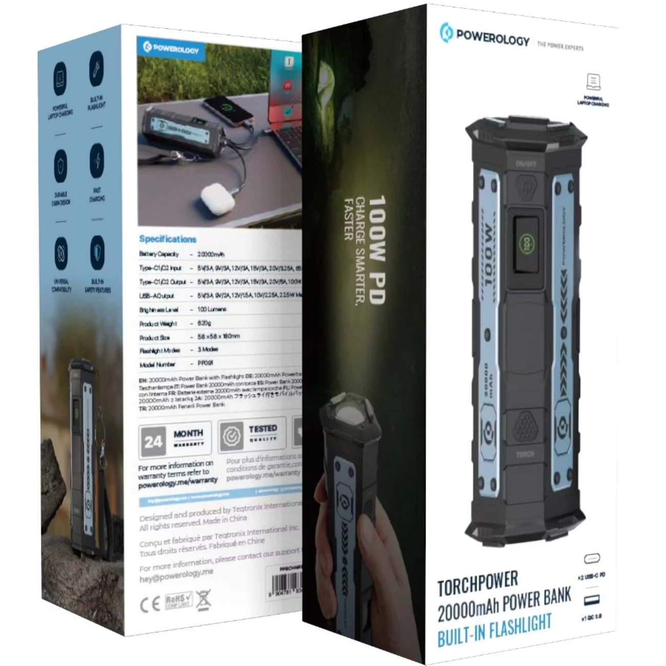 Powerology Torchpower 20000mAh Power Bank 100W & Flashlight 100 Lumens PP091 PPBCHA91BK