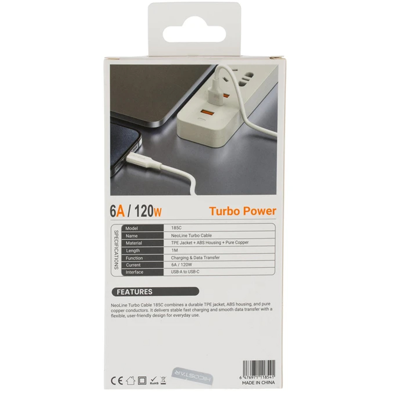 HICOSTAR USB to USB-C converter cable, model 185C, 1m