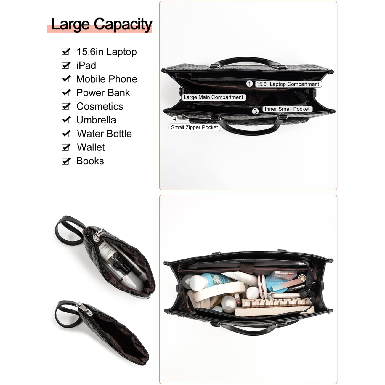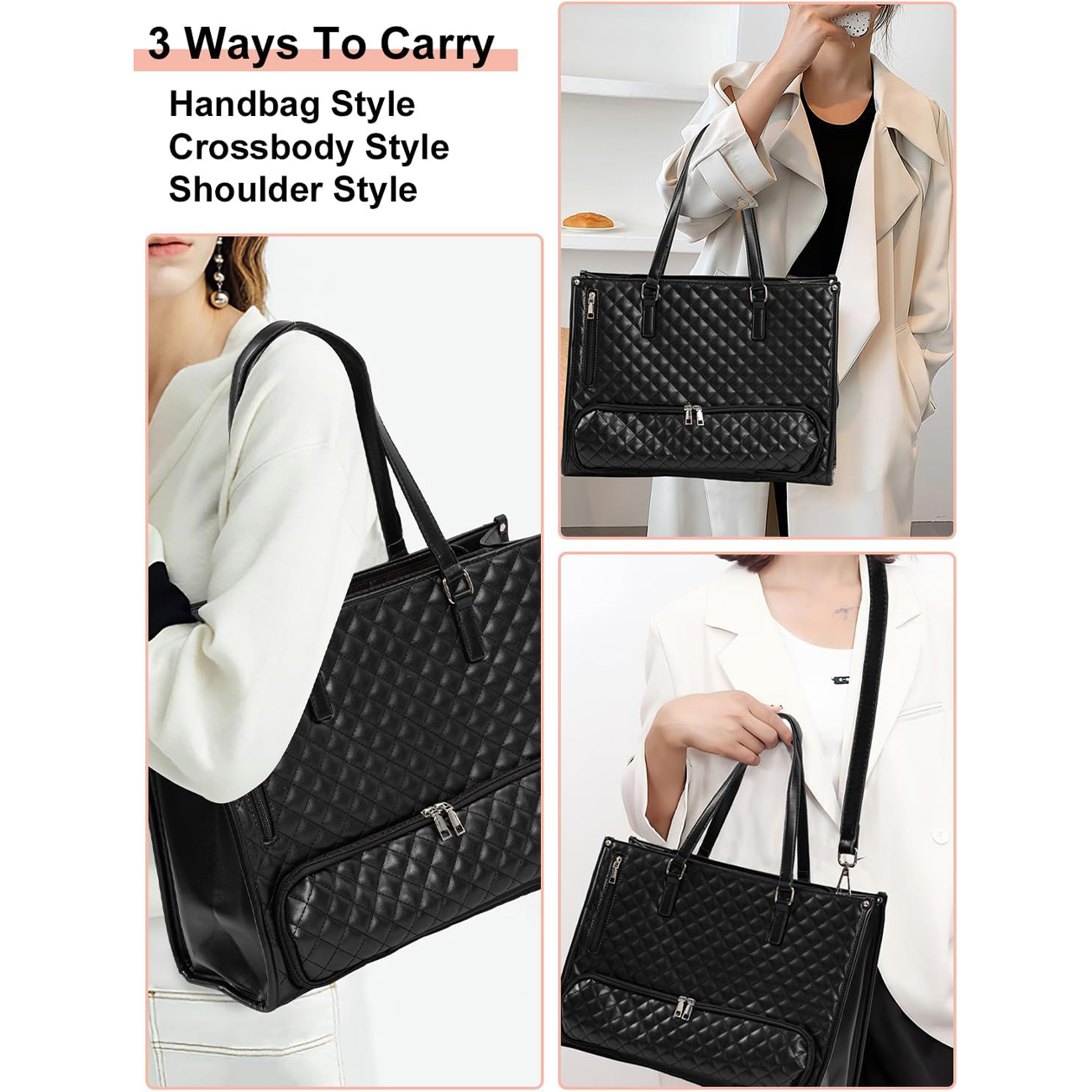 کیف دوشی زنانه و کیف لپ تاپ 15.6 اینچ با کیف پول و محفظه ناهار