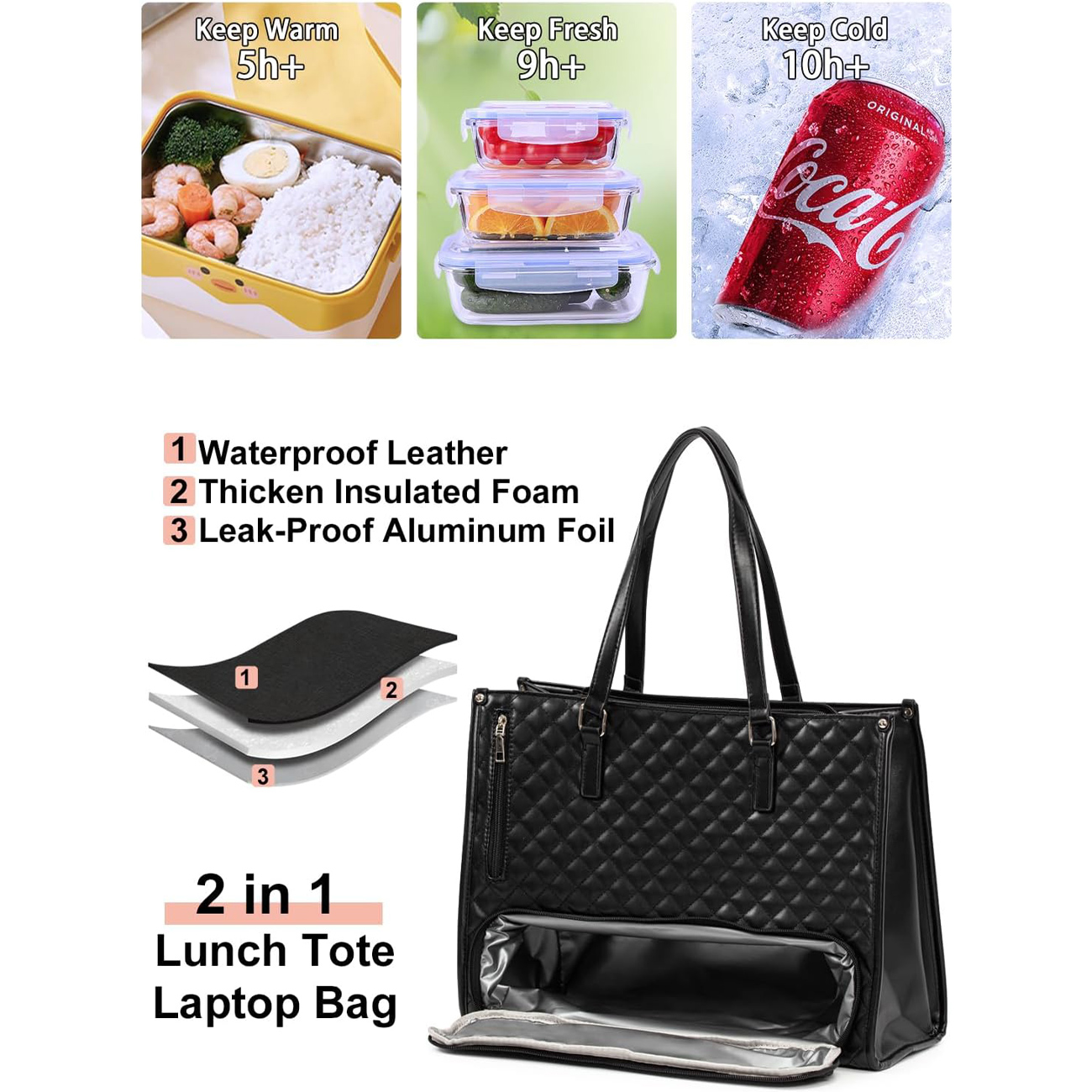 Tote Bag with Lunch Compartment ,Work Bag with 15.6 Inch Laptop Bag
