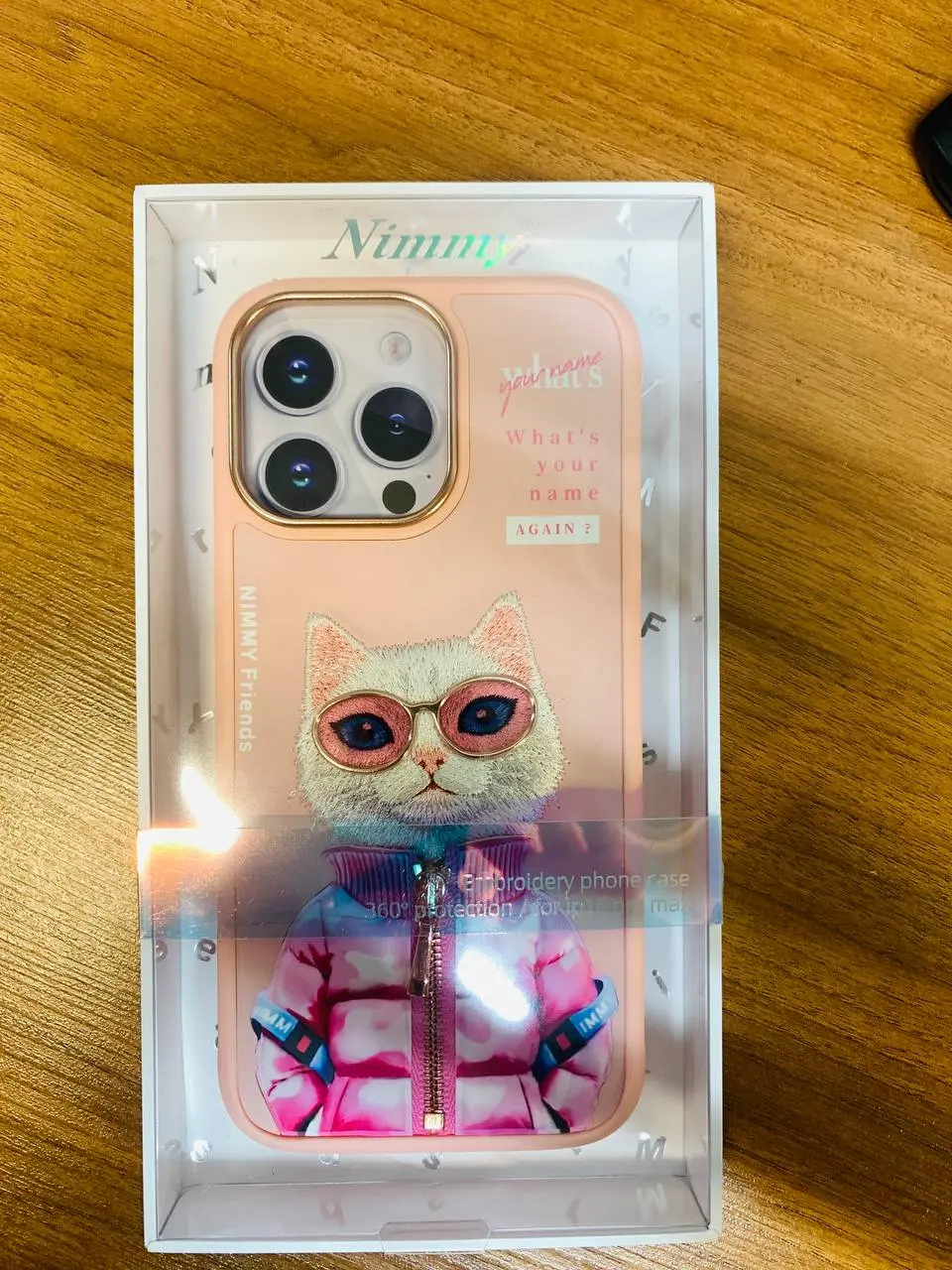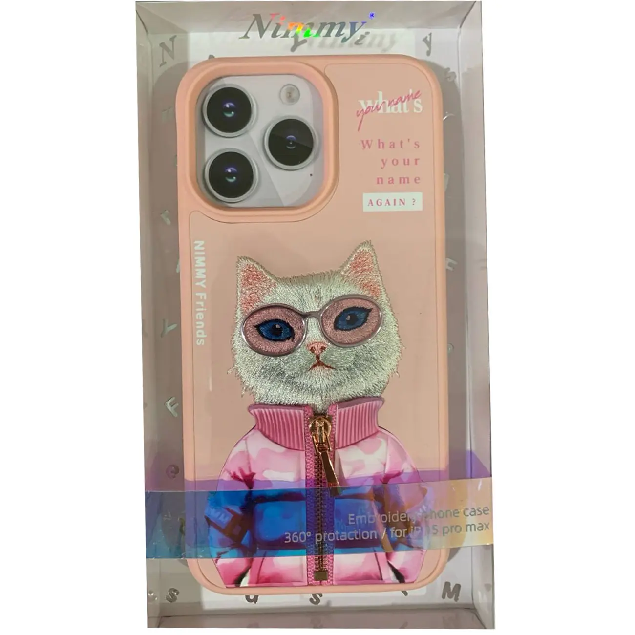 قاب گوشی آیفون 16 نیمی IP16-PRO-MAX-04طرح گربه با عینک و زیپ واقعی