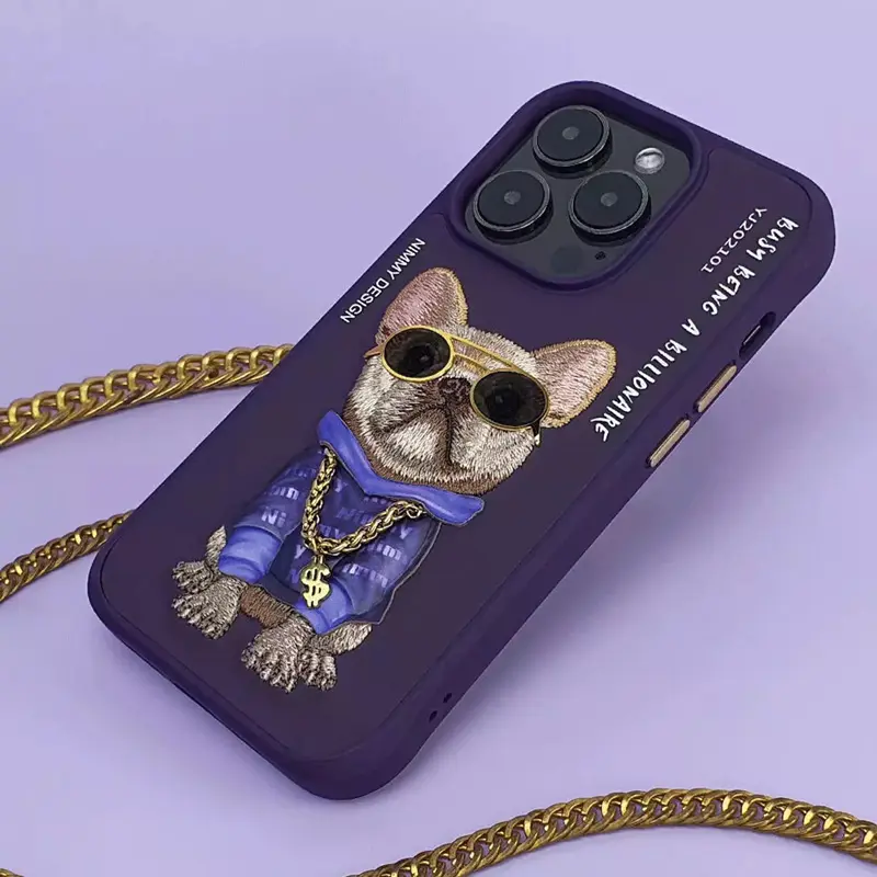 قاب گوشی آیفون 16 پرو طرح سگ عینکی با گردنبند واقعی و استایل بینظیر نیمی Nimmy Official Embroidery Chain Series Back Cover iPhone 16 Pro